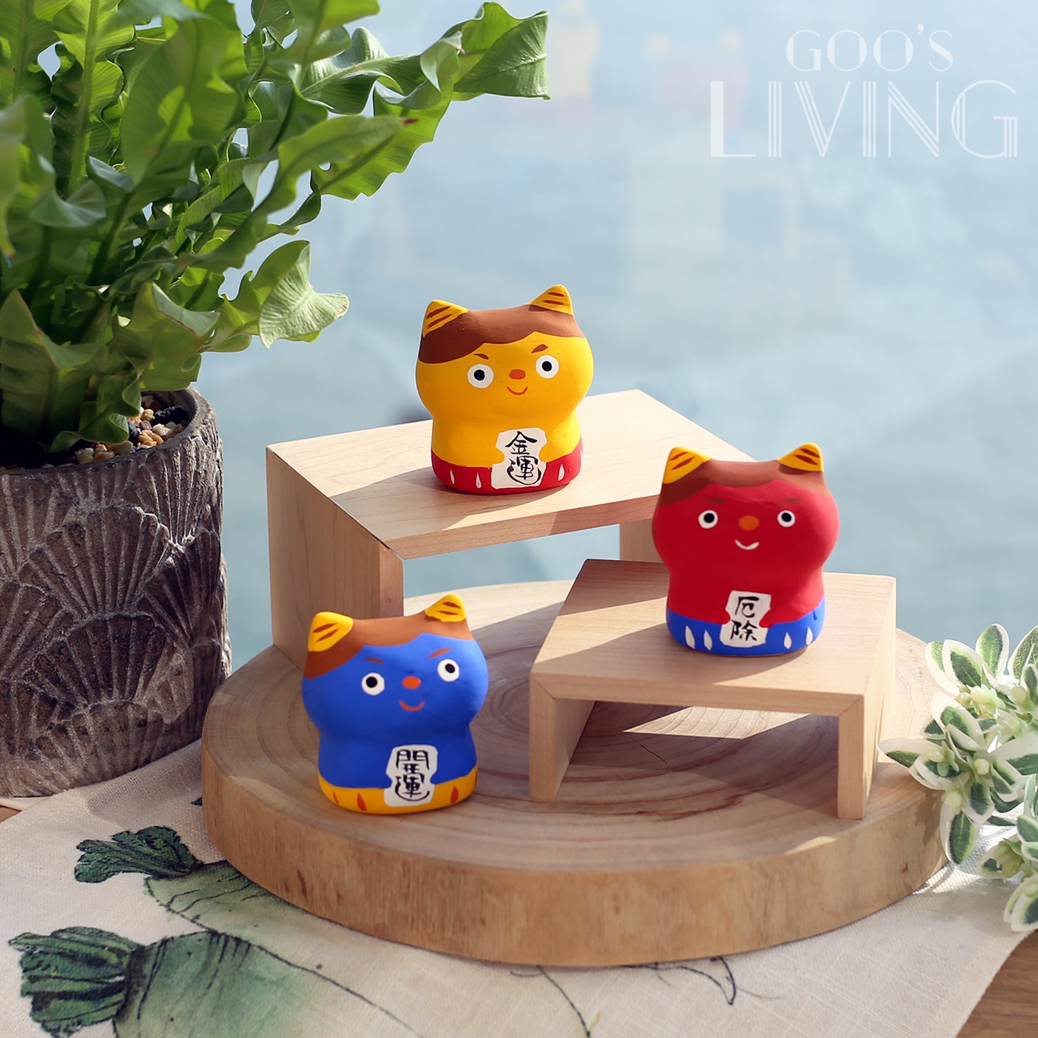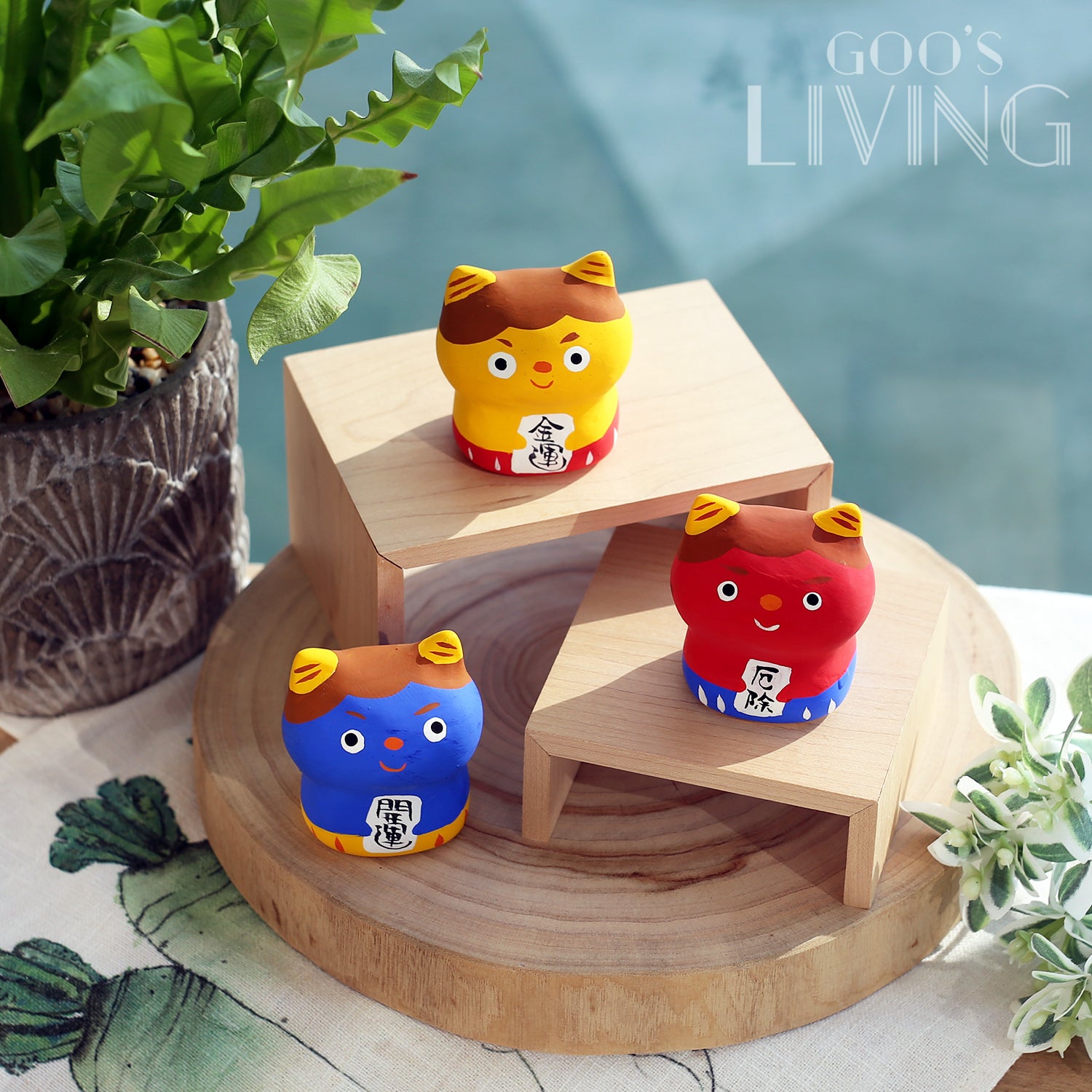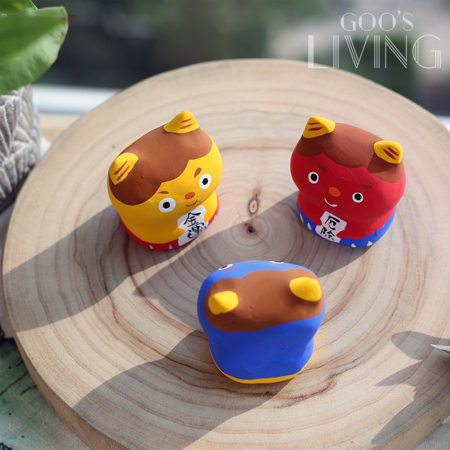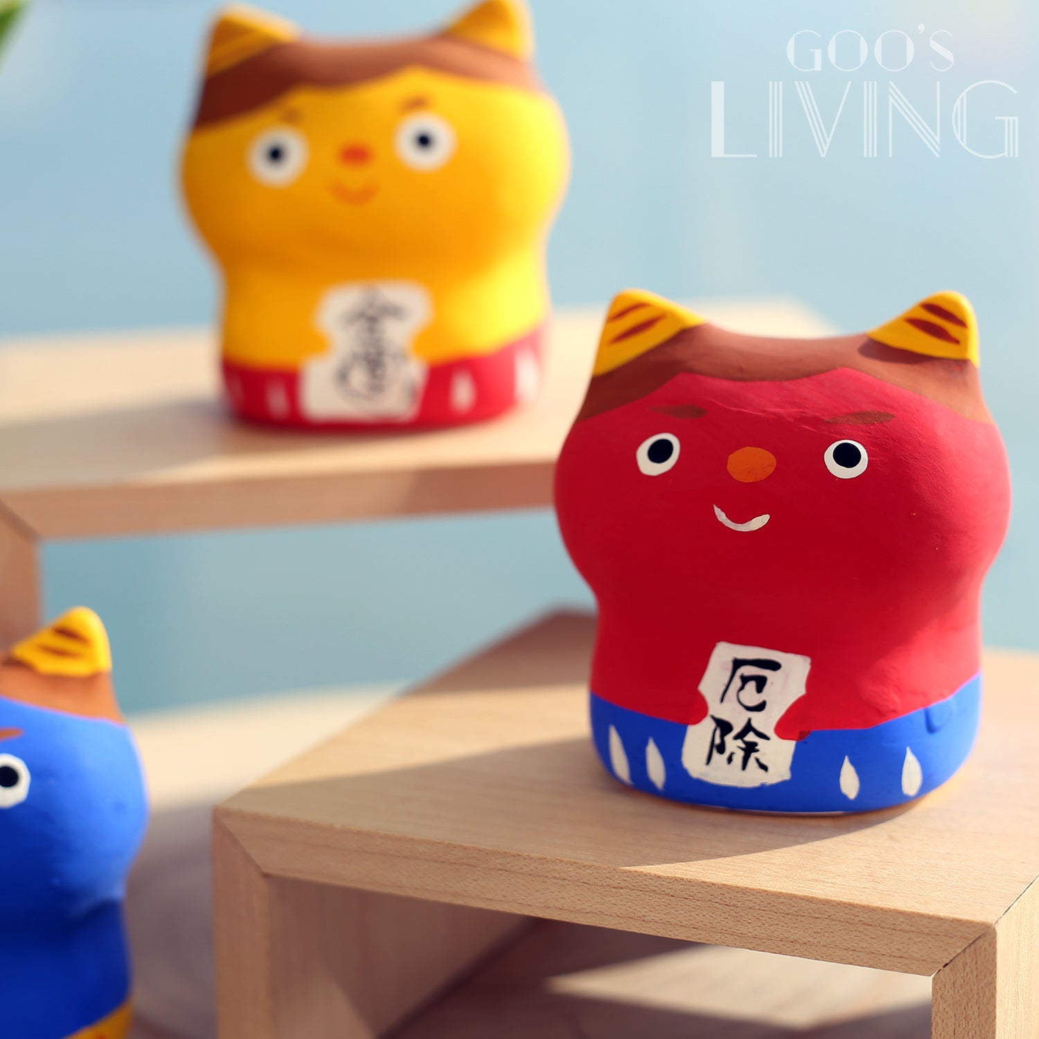 不同顏色的小鬼如達摩般有不同含意:紅色小鬼可幫大家驅瘟疫,防止不幸事情發生、藍色小鬼有開運,增強學業或事業運的意思、黃色小鬼則可招財,提升錢財運。此外,各色小鬼的樣貌極其趣致,配以可愛的神情,完美融入家中氛圍。