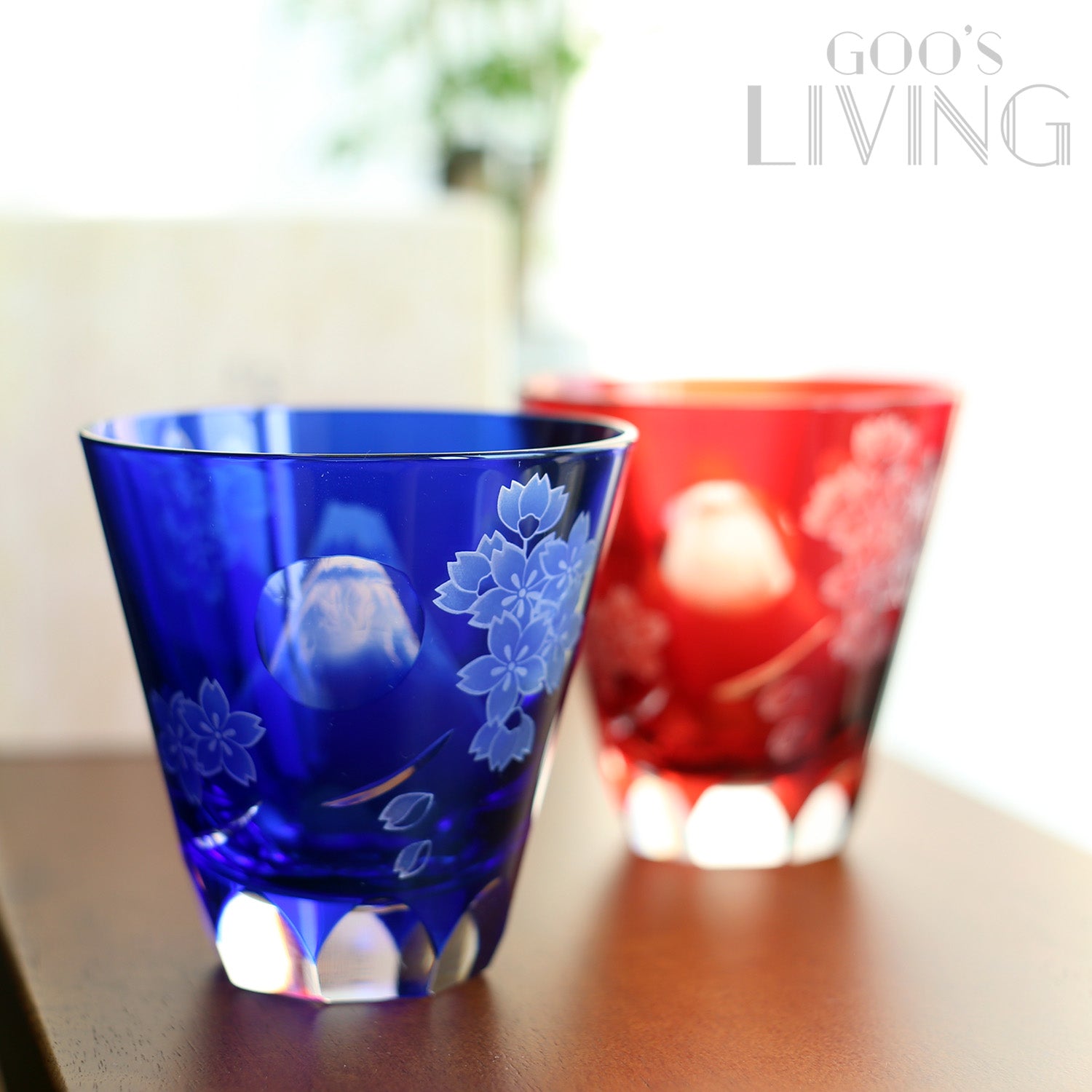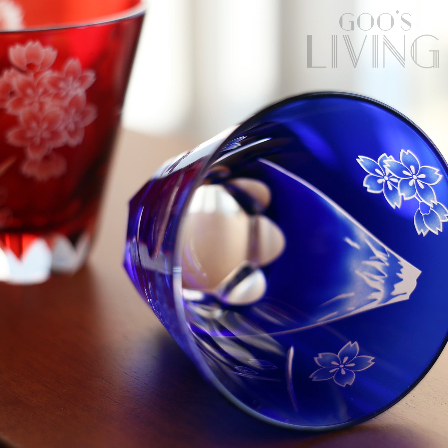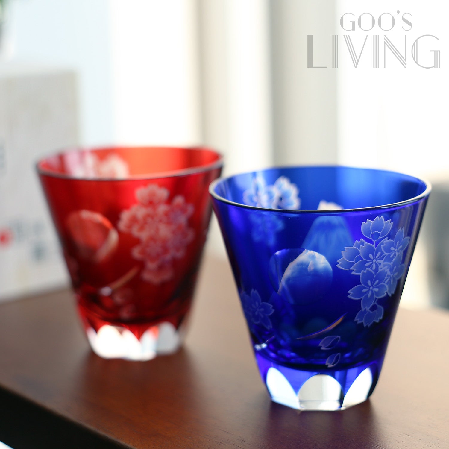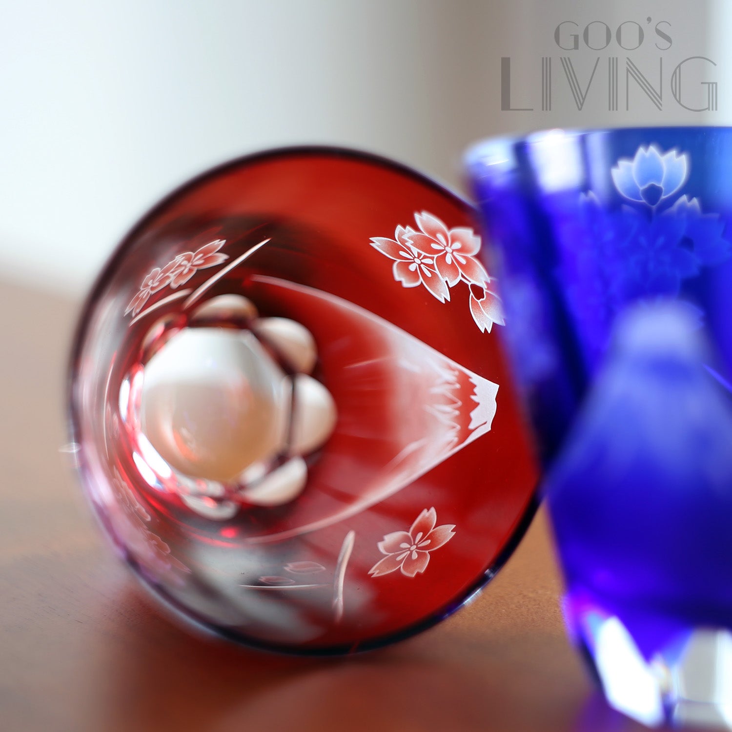 以窺視富士作主題的水晶杯,從不同角度觀看就有不同美態,變化極多。杯上有著一個仿太陽設計的圓形,從圓孔望過去的話,便可窺視到宏偉的富士山,配以杯子身上的櫻花圖紋,以及杯底特別打造而成的半圓圖案,猶如藝術品般精美。
