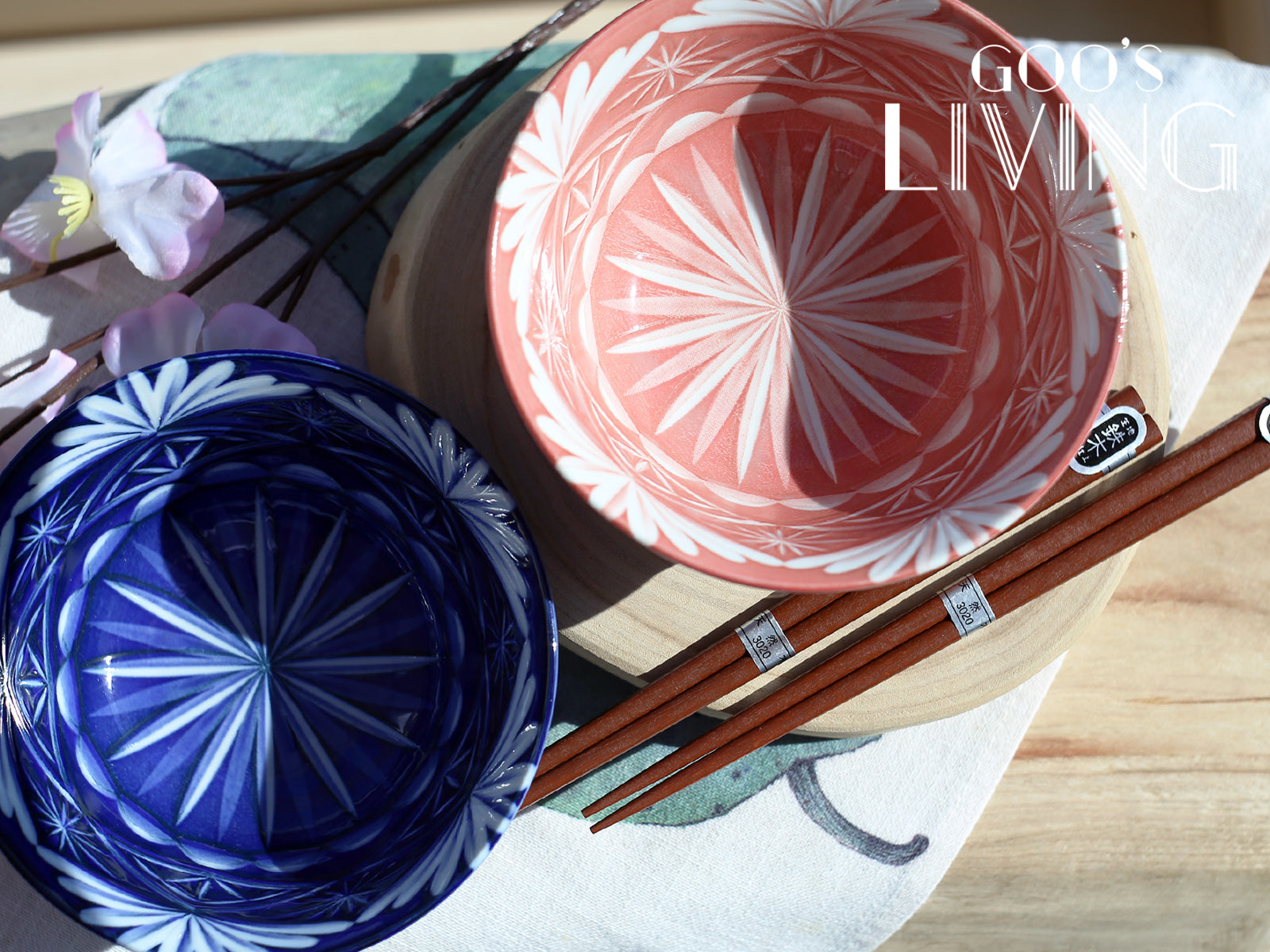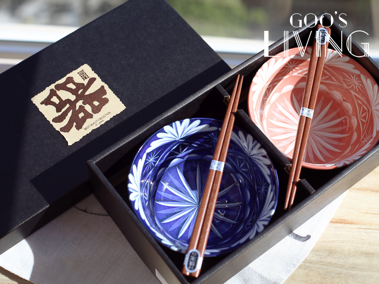 若對日本的玻璃工藝有一定認識,定必聽過「切子」這詞語。「切子」代表工匠會把玻璃染上不同顏色,再刻上各種細膩圖案的傳統玻璃工藝,而江戶切子則是代表從江戶時代流傳下來的技術。這對以美濃燒製作的多用途對碗,就把江戸切子的美麗圖案燒製在瓷器上,將條紋圖案及光線結合,以藝術品的姿態為你盛載不同佳餚,連同兩雙用了鐵木製作的木筷子,自用送禮兩相宜。