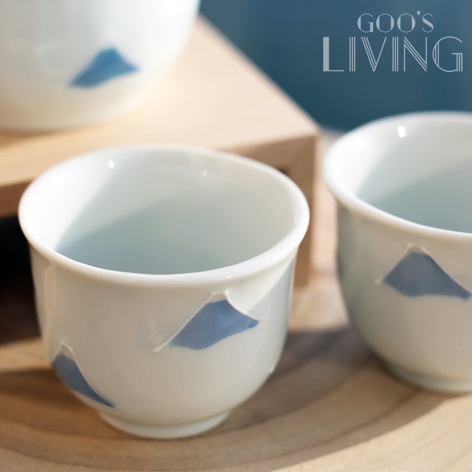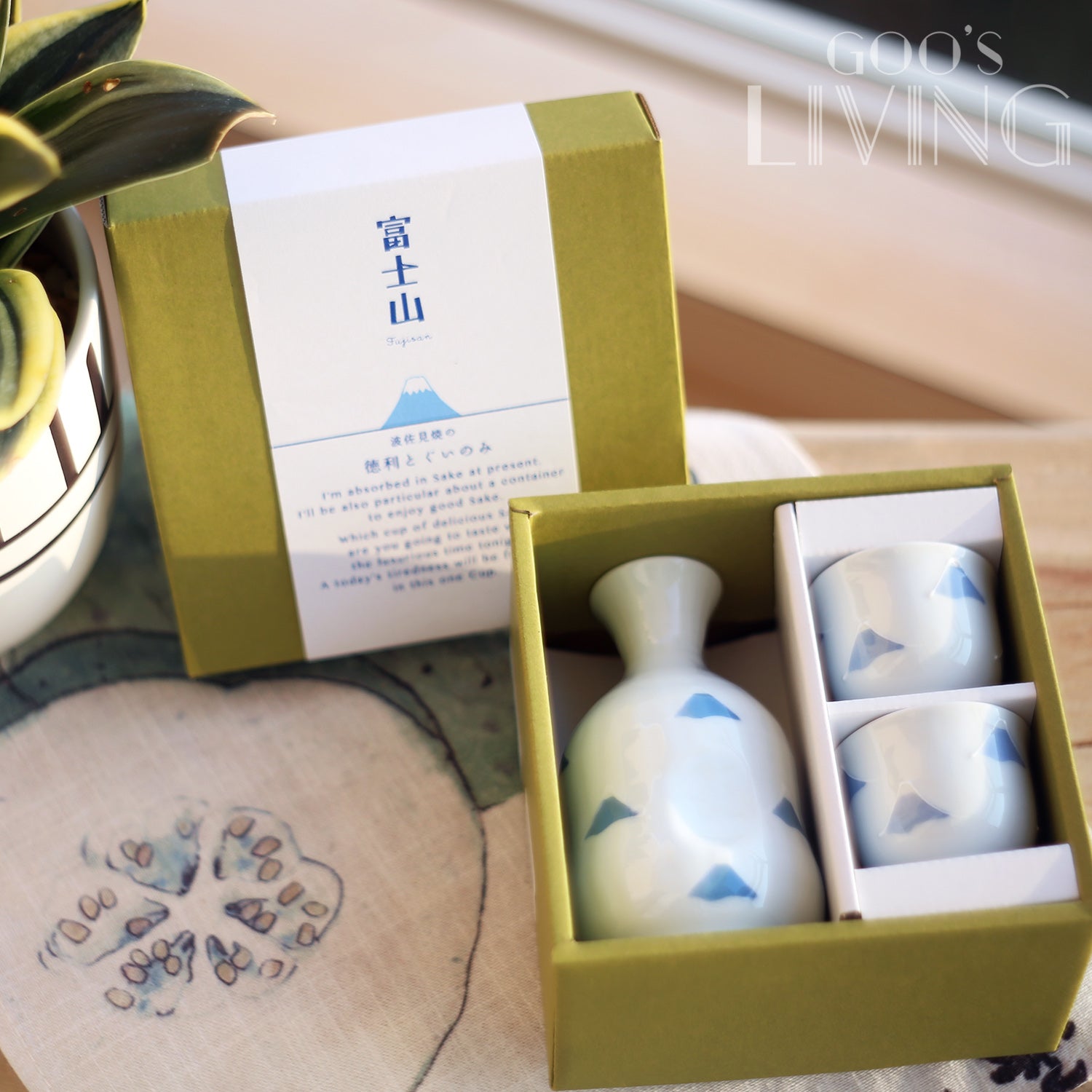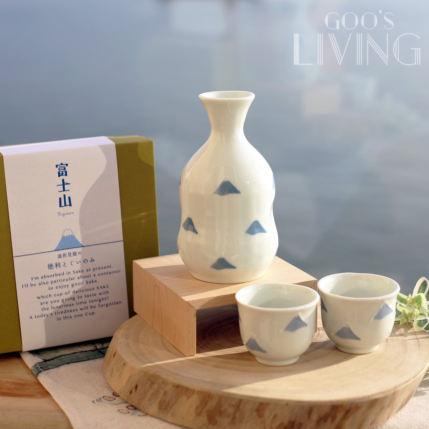 富士山是日本最重要的國家象徵,不少日本人或外國人都對富士山有著獨特的情感,故市面上有不少產品都以富士山為題,單是酒器款式已相當驚人。而這套波佐見燒的富士山清酒酒器就以簡約為主,純白色的瓶身搭配淡淡的水藍色,手繪的富士山圖案優雅別緻,加上瓶身的內凹設計讓人可輕鬆握著,其保溫功效更是喝熱清酒的首選,讓你小酌時猶如置身日本。富士山清酒酒器套裝包含酒瓶與2隻酒杯,均適用於家用微波爐及洗碗機。