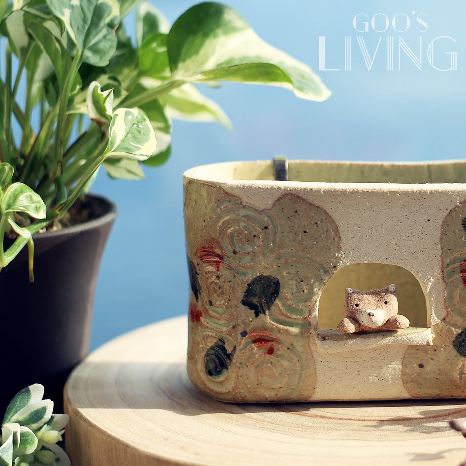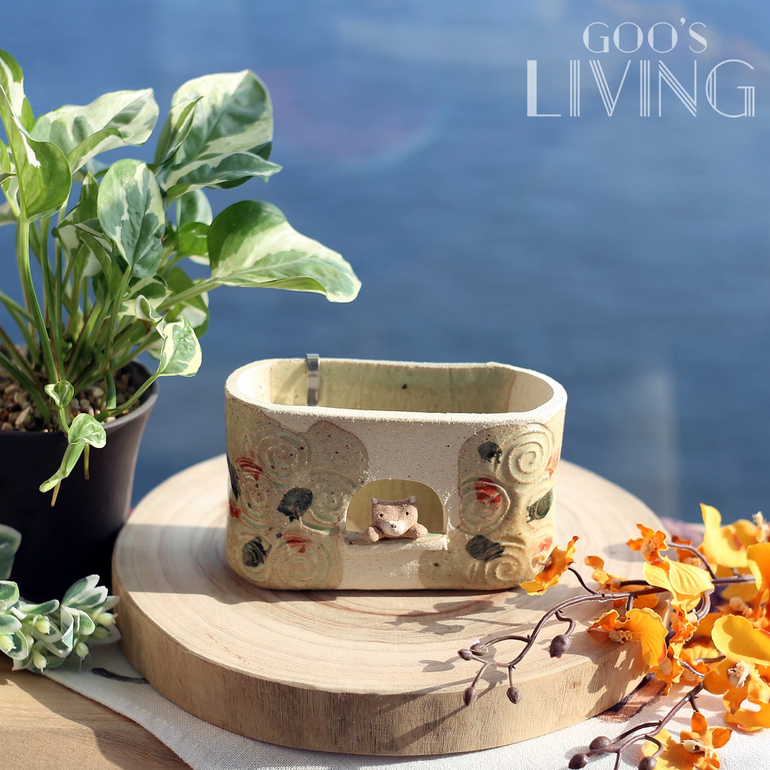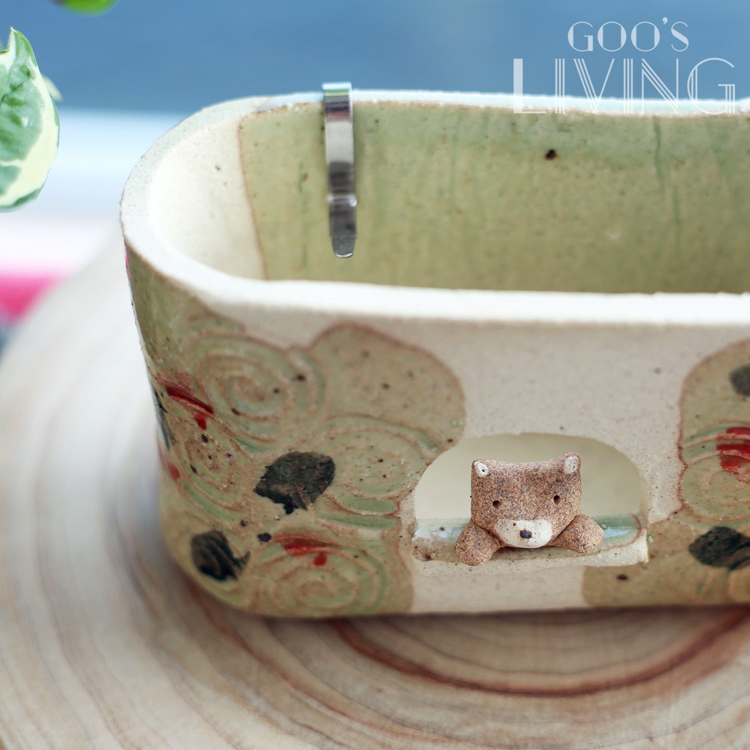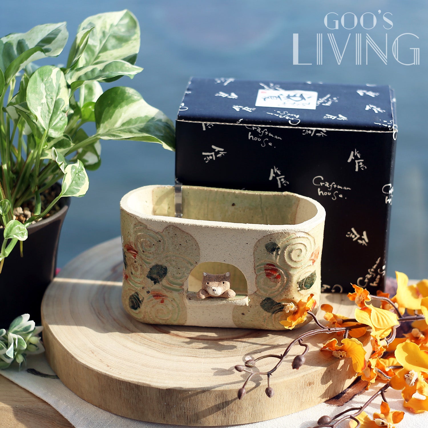 以瀨戶燒製作的線香盆由工匠全人手雕磨而成,盆中央刻意設有小窗設計,以增強盤香與空氣之間的流動,而小窗上更有一隻露出半個身子的小柴犬,趣味大大提升。