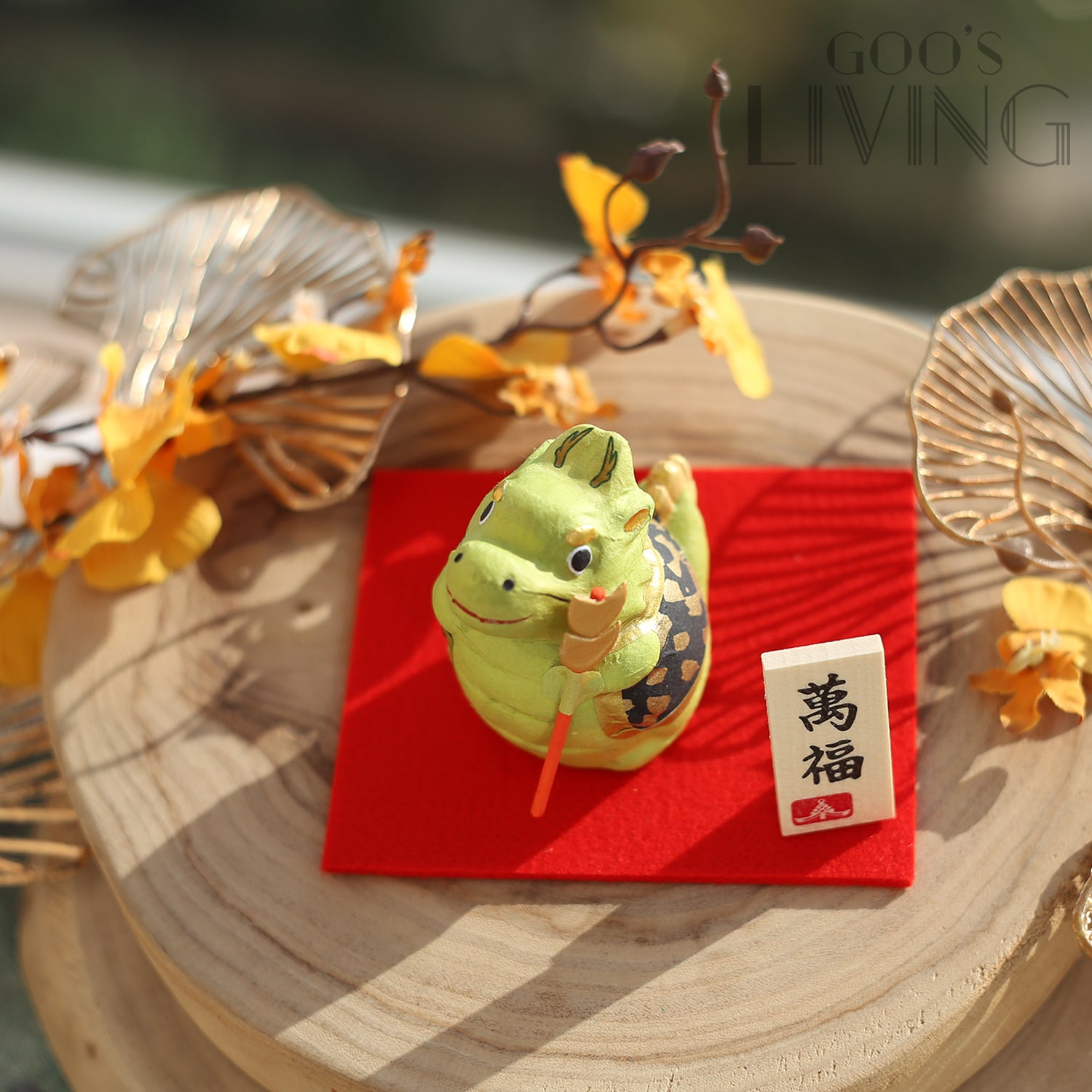 今年的萬福龍手持著日本傳統的祈福用品「破魔矢」,與一般的箭相比,破魔矢是沒有箭頭的箭,在日本有「破除妖魔、袪邪避厄」的象徵,更有守護與願望達成的寓意。萬福龍身上的賀歲衣更是人手染製而成,每隻均有不同,獨一無二。