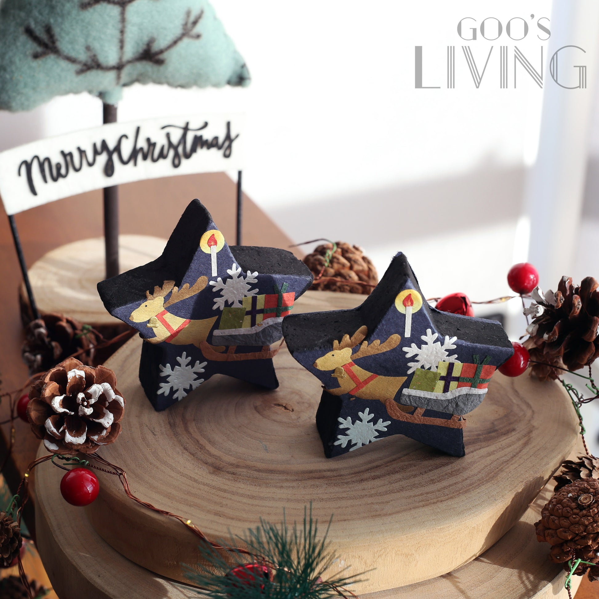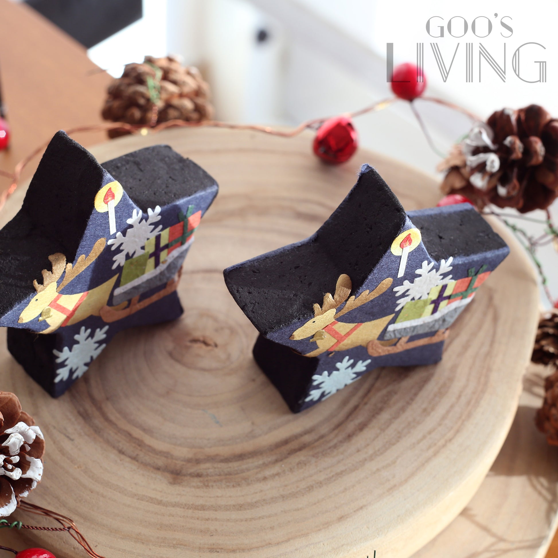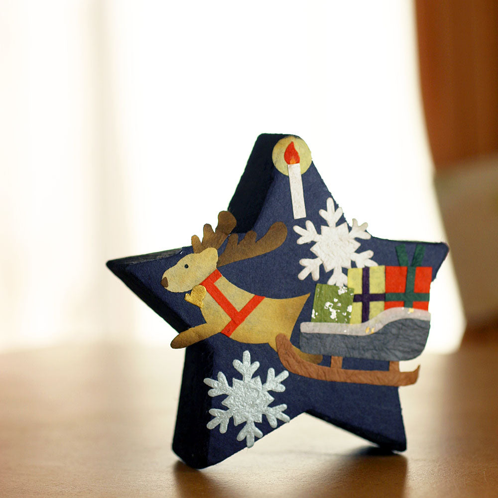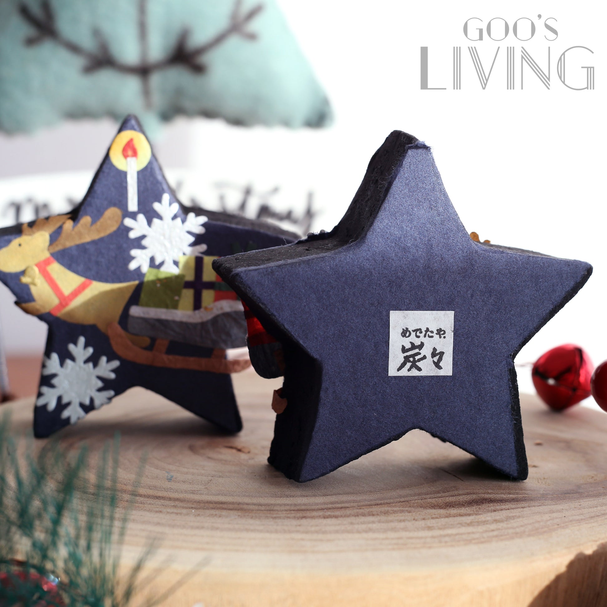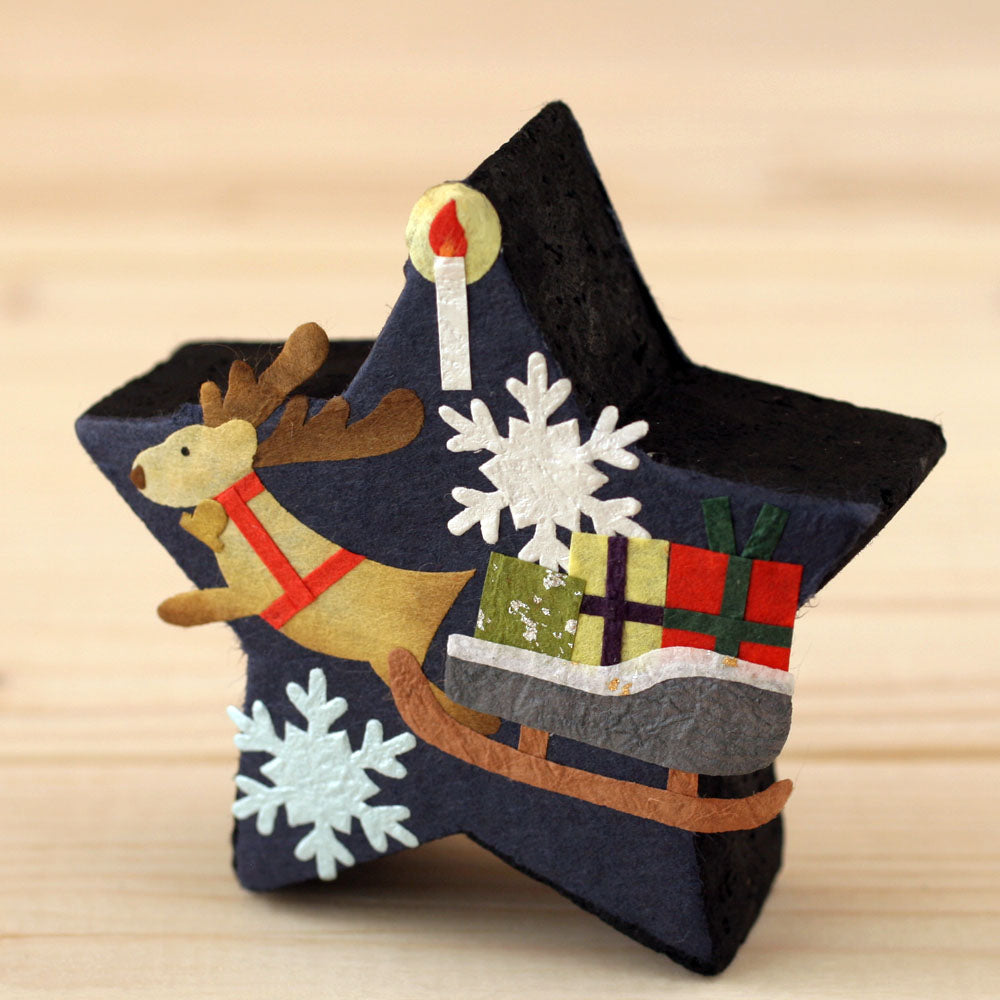 石川製紙工業株式會社在不同節日均會推出不同產品,今年聖誕節就推出了這個以聖誕夜為主題的星型室內消臭炭。匠人們在星型的除臭炭上貼上美濃紙,以馴鹿、雪橇、雪花與聖誕蠟燭打造出聖誕氣氛,配以可消臭、調濕及有效清除有害物質的木炭,放在玄關、鞋櫃或廁所均可。