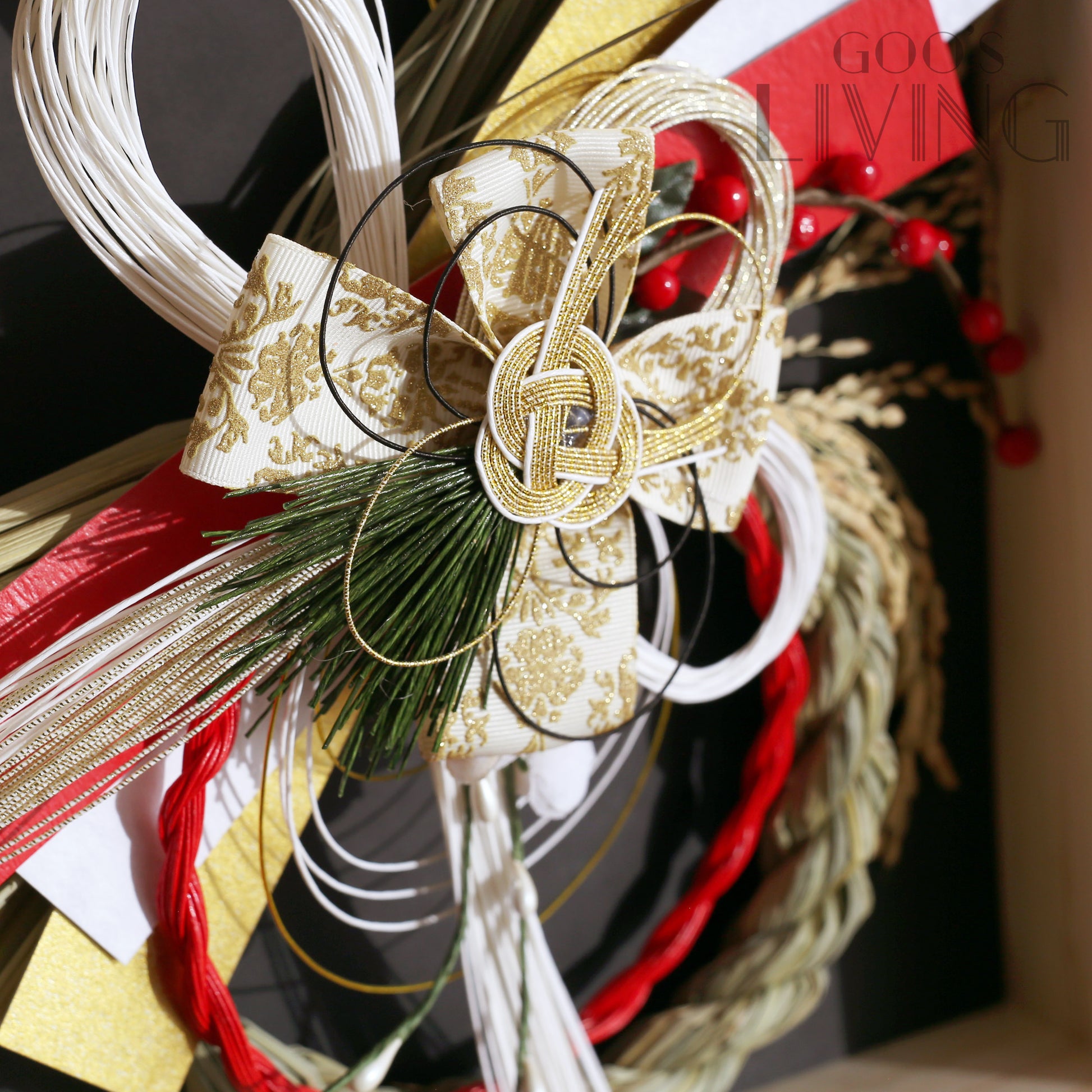 而正月飾上的東西各有不同寓意,如作為骨架的稻草圈是具有祈福意涵的護身符,以其結繩形象延伸為「結界」,意諭此地為神祇所照護的領域;稻穗代表感恩、豐收以及孕育新生命的能量;紅白或金銀搭配的繩結水引表示美好的願望;葉象徵多子多孫;中間的仙鶴則代表長壽健康:而金摺扇就被視為繁榮的象徵,代表開運、招福,為你帶來財運意思。
