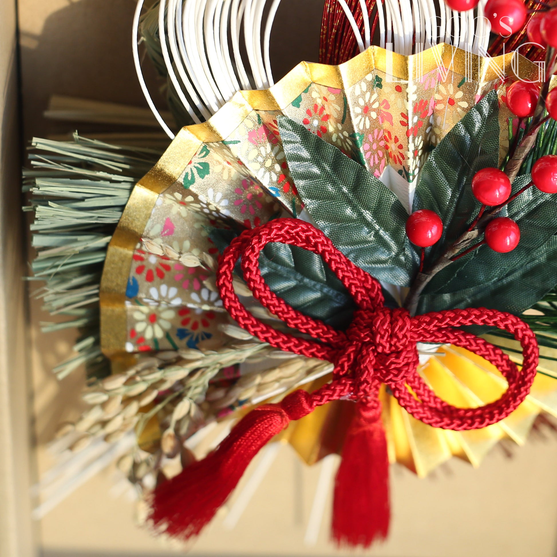 正月飾以新潟縣南魚沼產的稻草作骨架,並以工匠非凡的心血和精湛技術裝飾,獨有的稻草香亦可提升新一年的好景象。而正月飾上的東西各有不同寓意,如作為骨架的稻草圈是具有祈福意涵的護身符,以其結繩形象延伸為「結界」,意諭此地為神祇所照護的領域;稻穗代表感恩、豐收以及孕育新生命的能量;紅白或金銀搭配的繩結水引表示美好的願望;葉象徵多子多孫;中間的仙鶴則代表長壽健康:而金摺扇就被視為繁榮的象徵,代表開運、招福,為你帶來財運意思。