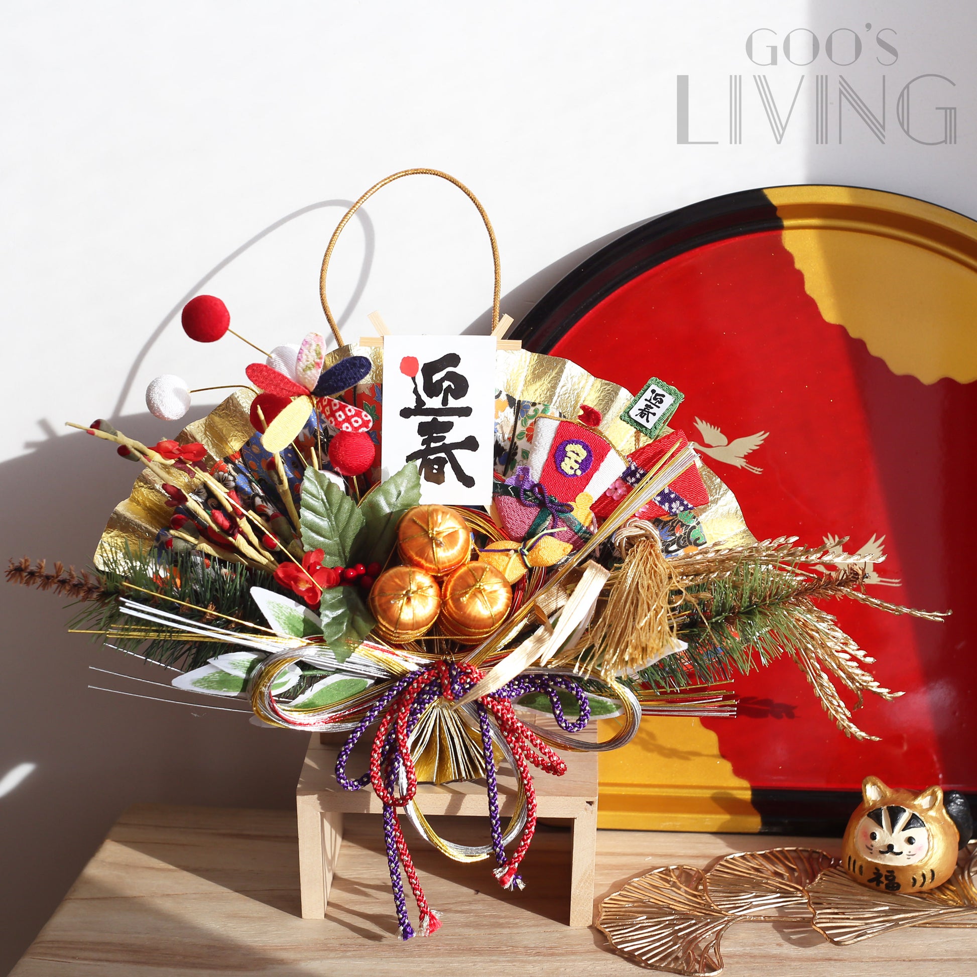金扇在日本象徵繁榮與繁盛,與寓意五穀豐收、豐衣足食意思的金米桶和大麥相輔相成。而金扇上搶眼的板羽球就因拍打擊球所發出的咚咚聲,故有消災解厄、驅邪避凶的涵意;羽子板就包含了健康成長、無病息災的祝福,加上寓意著福氣與財氣的寶船,祈求新一年順順利利,身體健康。