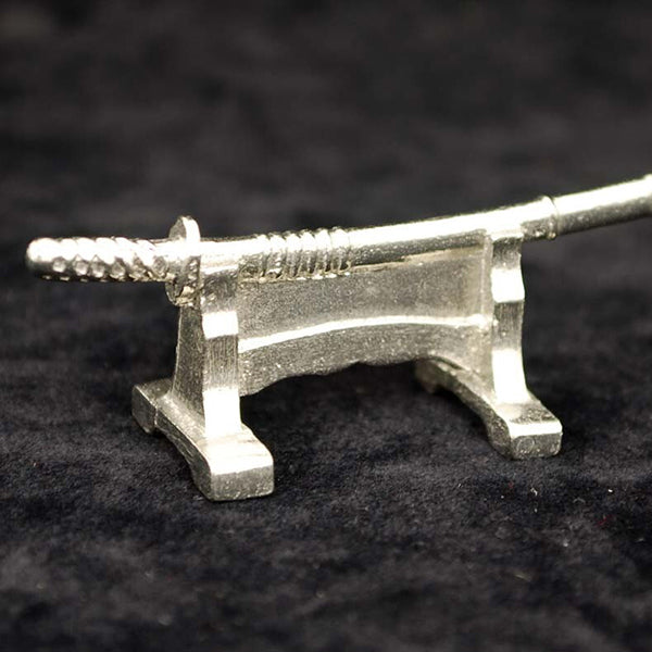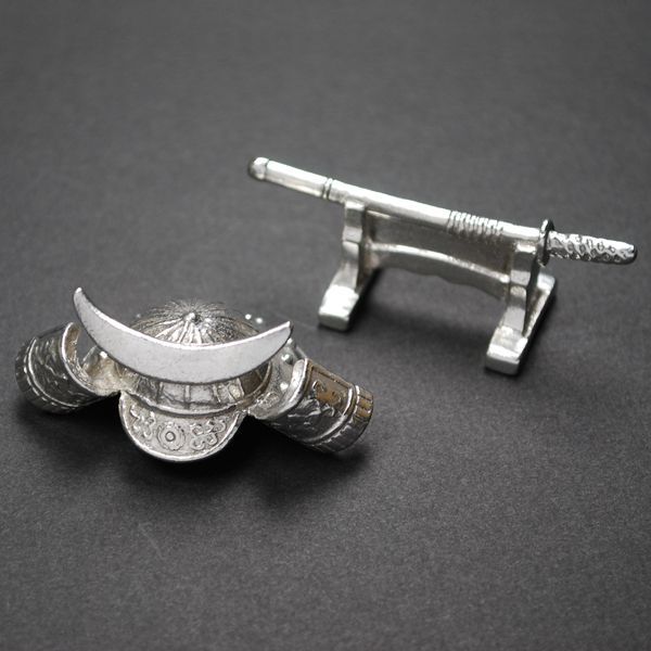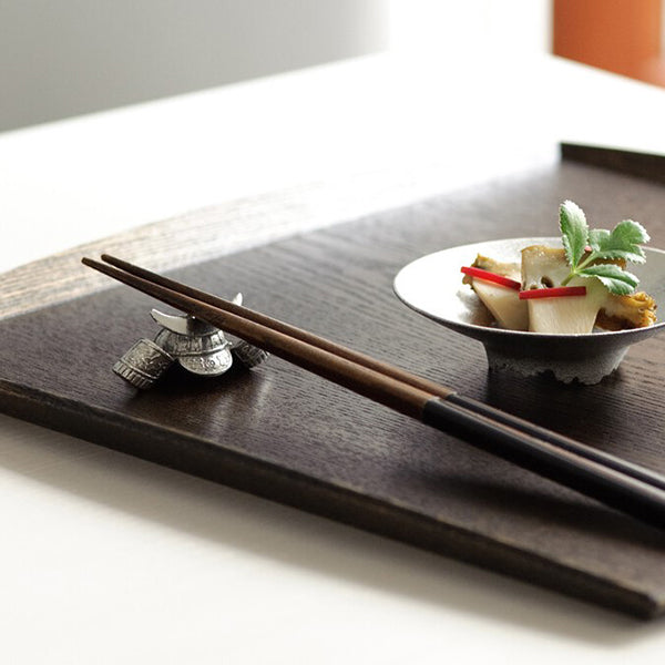 銀雅堂推出的「武者揃」以日本古代武士裝束為象徵,一盒備有武士頭盔及武士刀造型筷子托各一,兩者同樣以錫鑄造,可作為餐桌上的筷子托或擺飾。