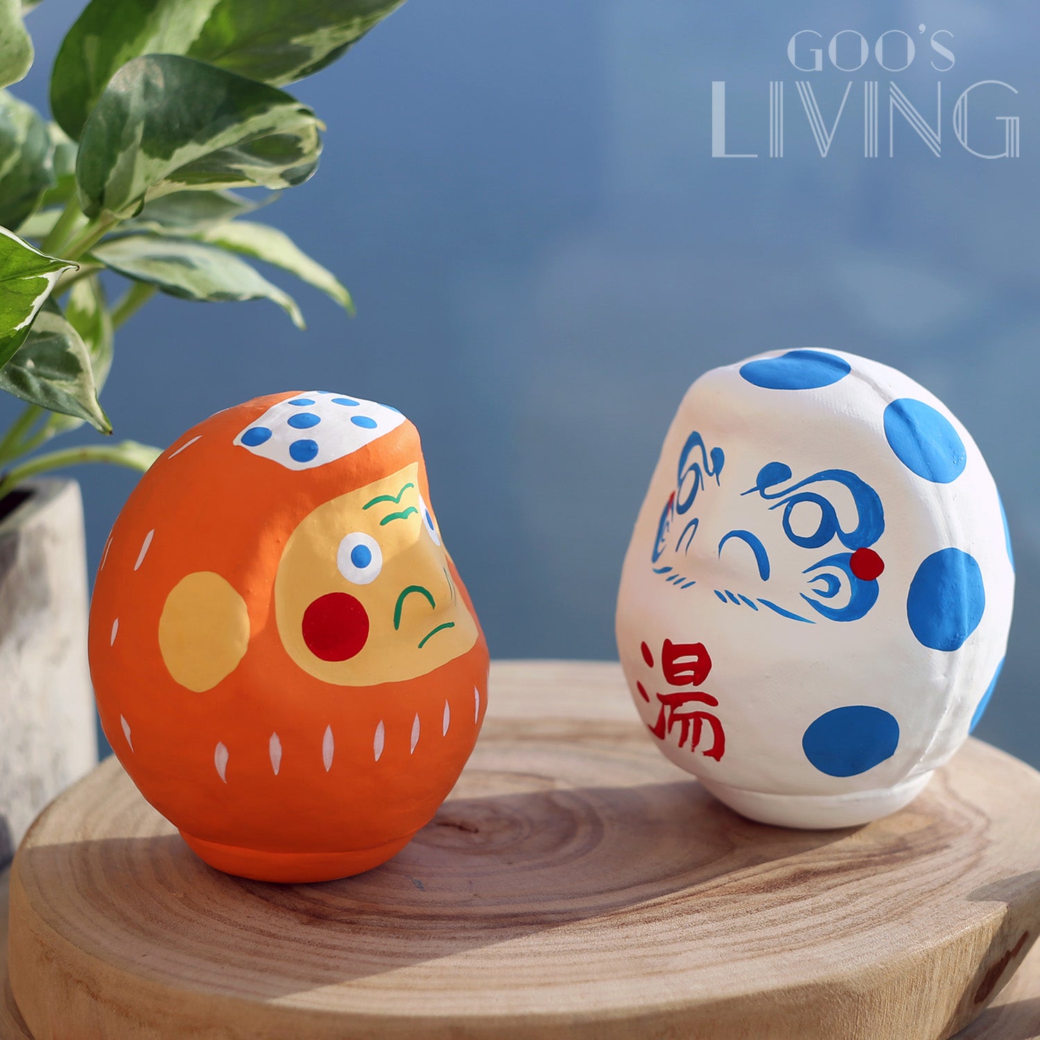 已有數百年歷史的高崎達摩,每年均會推出多種不同款式,是次的達摩就以溫泉為主題,把最具日本特色的溫泉猴子化成2款達摩擺設。猴子達摩精心地在頭上畫了小毛巾,臉上更畫了2個紅紅的胭脂,浸溫泉浸到滿臉通紅的猴子相當可愛;而藍白版的達摩則寫上湯字,配以波點為重心,兩者同樣極具特色。