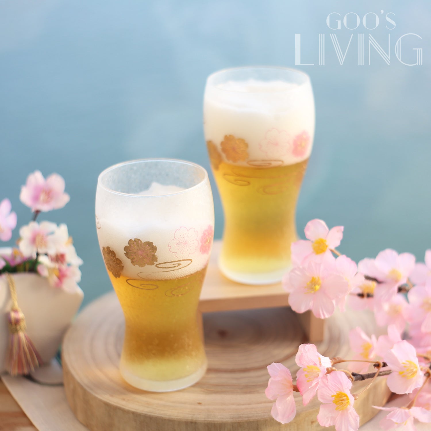 櫻花金箔玻璃杯以粉櫻與白櫻為題,配以金箔繪上的流水紋,讓櫻花猶如在旋轉的小溪流中翩翩起舞。杯子更用上了獨特的結晶霧面玻璃,不但能減少水珠凝結,其玻璃表面亦由工匠親手繪上,粉櫻、白櫻與金色的流水紋三色交錯,在陽光下閃閃發光,獨一無二。每隻啤酒杯更設有桐木盒包裝,送禮自用均可。