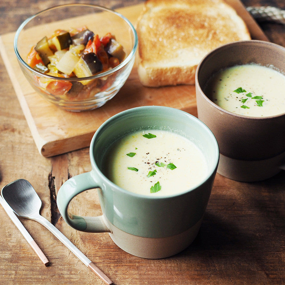 由日本人氣營養師菱沼未央所創立的品牌「Bread & Rice」,設計重心是可每天使用的餐具,一切以簡約風為主。此款陶瓷杯源自岐阜縣美濃燒窯場,上半部染上了四款不同的釉色,配以下半部咖啡色的磨砂質感,有著濃厚的溫暖感,風格百撘,加上輕身的設計可減少手部負擔,即使在滿杯的狀態下也不覺重。