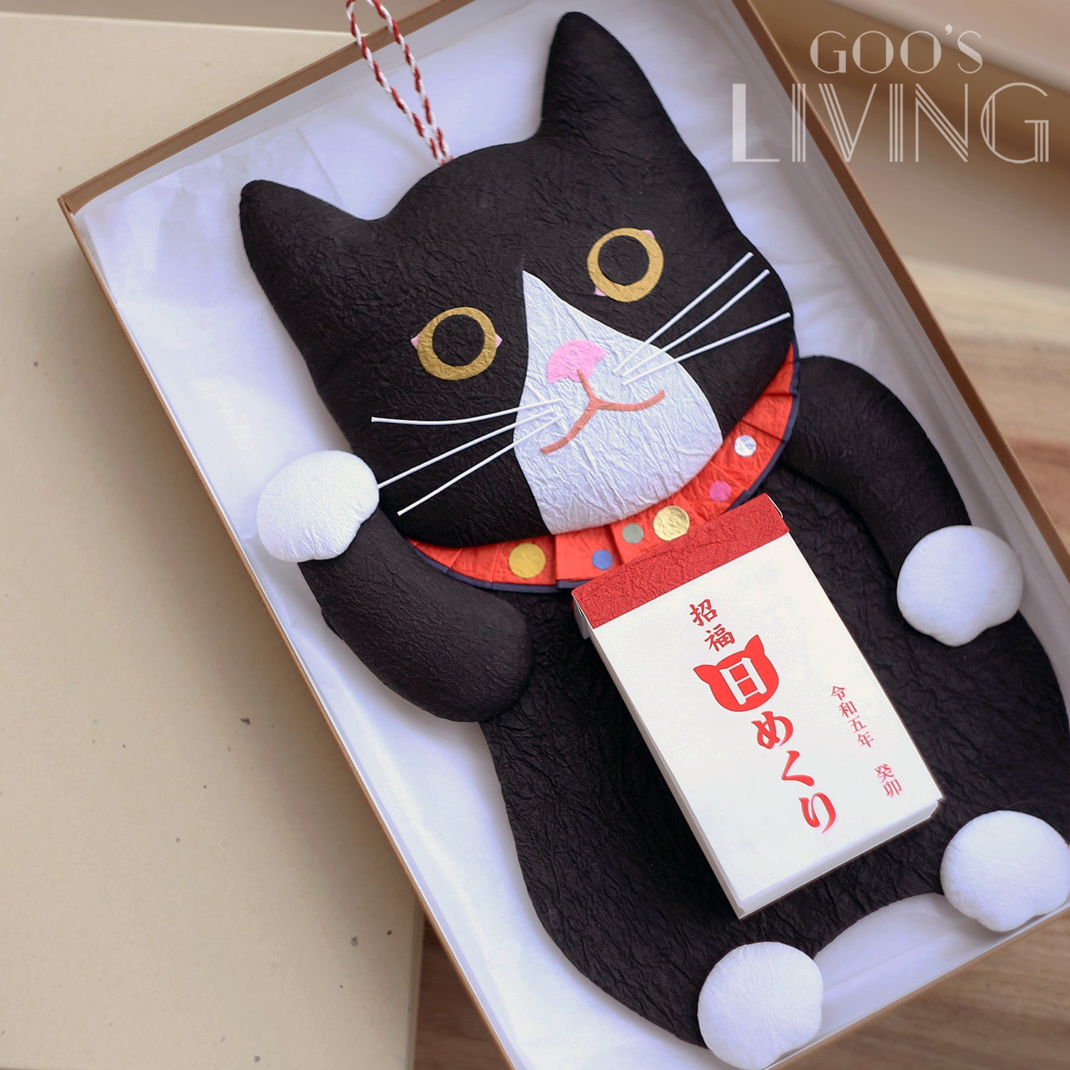 Medetaya 和紙招財黑貓日曆