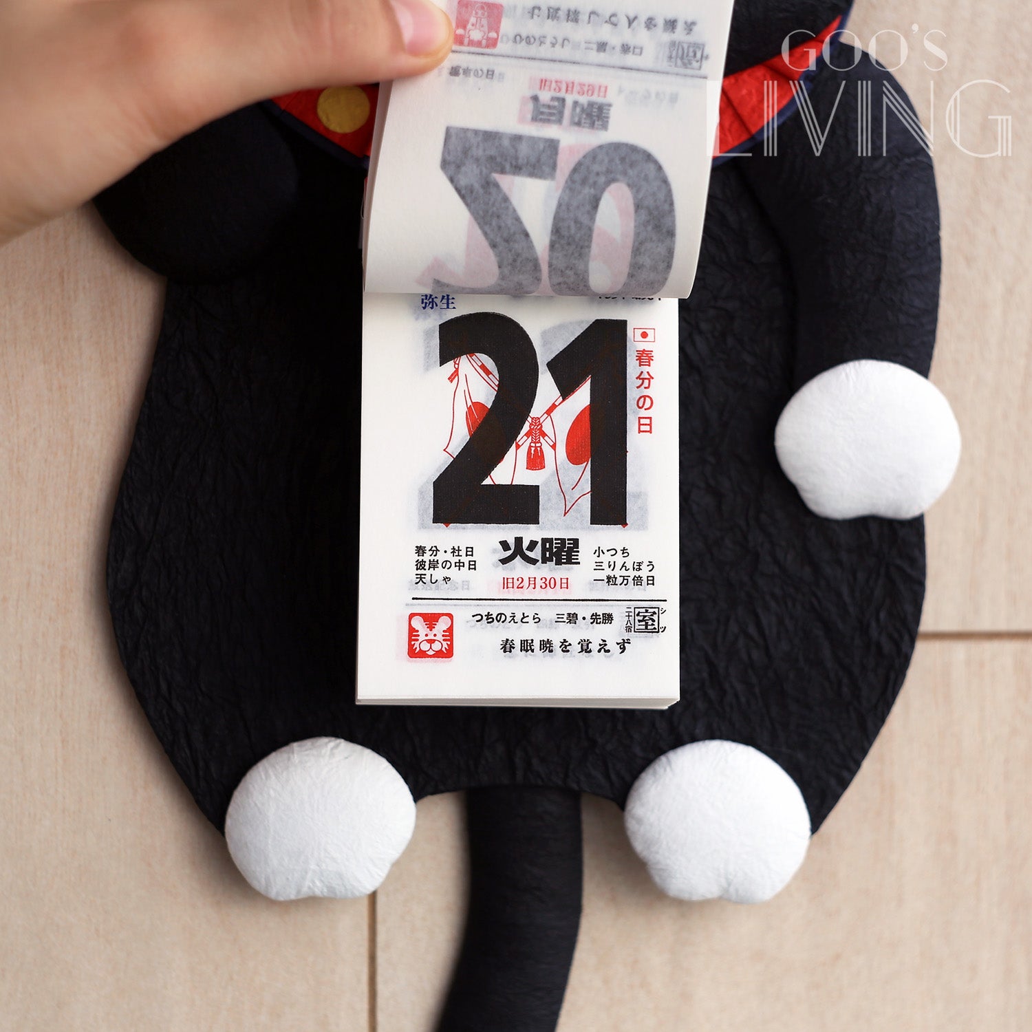 整個日曆均以日本傳統工藝和紙製作,並在臉部、四肢和尾巴內填滿蓬鬆的棉布,營造出立體蓬鬆的設計,其尾巴更可左右搖動。雖然這日曆是2023年日本的年曆,但日子與星期均與香港相同,惟一不同的是你可得知日本的假日,讓你隨時得知當地節日盛事。