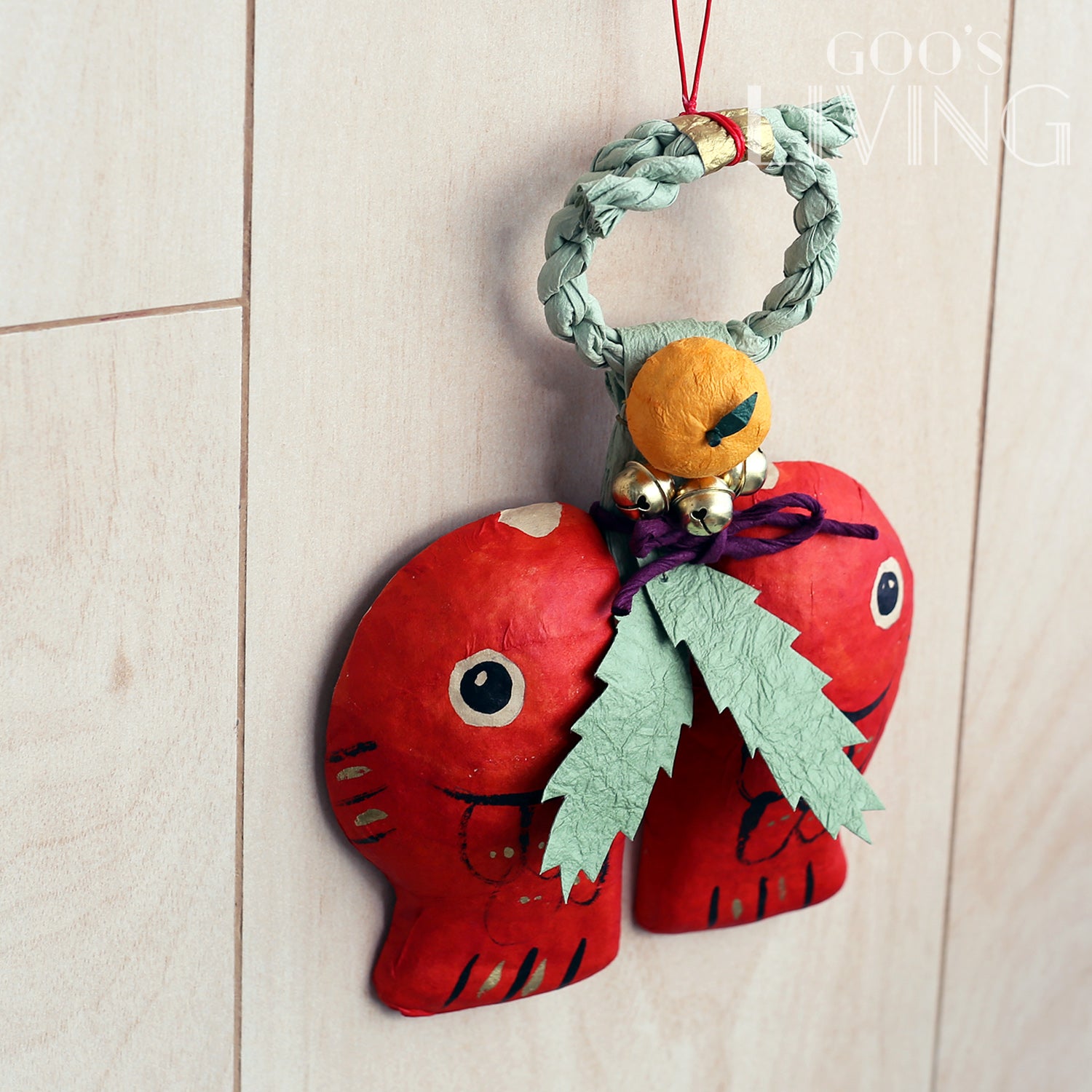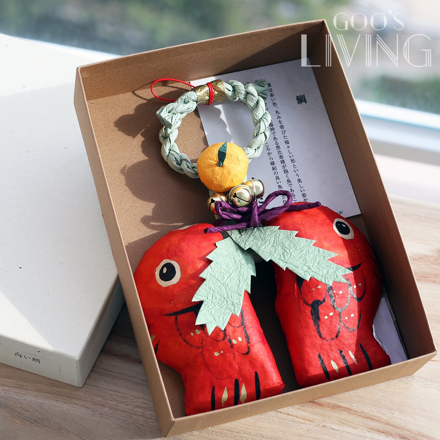 在日本人心目中,鯛魚有著特別的地位,因鯛魚在日本有著長壽、祝福或開運等好寓意,連日本人最信奉的惠比壽也把鯛魚捧在手中。以和紙製的鯛魚注連繩有著搶眼的亮麗紅色,鯛魚上更設有寓意全家世代健康長壽、繁榮昌盛的蜜柑,務求以最好的一切迎接一整年。