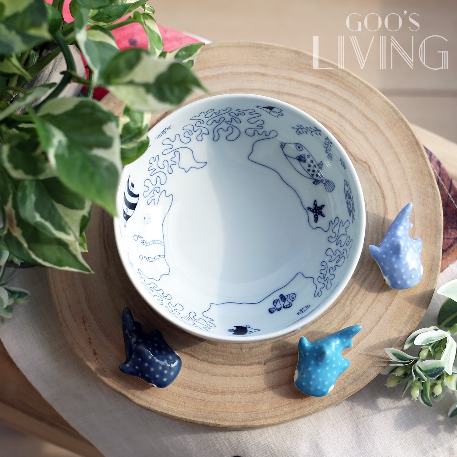 品牌Natural69以大小魚群和海洋生物為主題的Cocomarine系列,是由熱愛潛水的設計師,將潛入大海時看到的實景帶到你眼前,碗上有著潛水員最愛看到的鯨鯊和魔鬼魚圖案,亦有一些憑想像畫出的海洋生物。海洋湯碗適合放置各種沙拉、湯或粥類等食餚,亦可用作兒童碗以及湯麵碗,在餐桌上輕鬆營造日式氛圍。