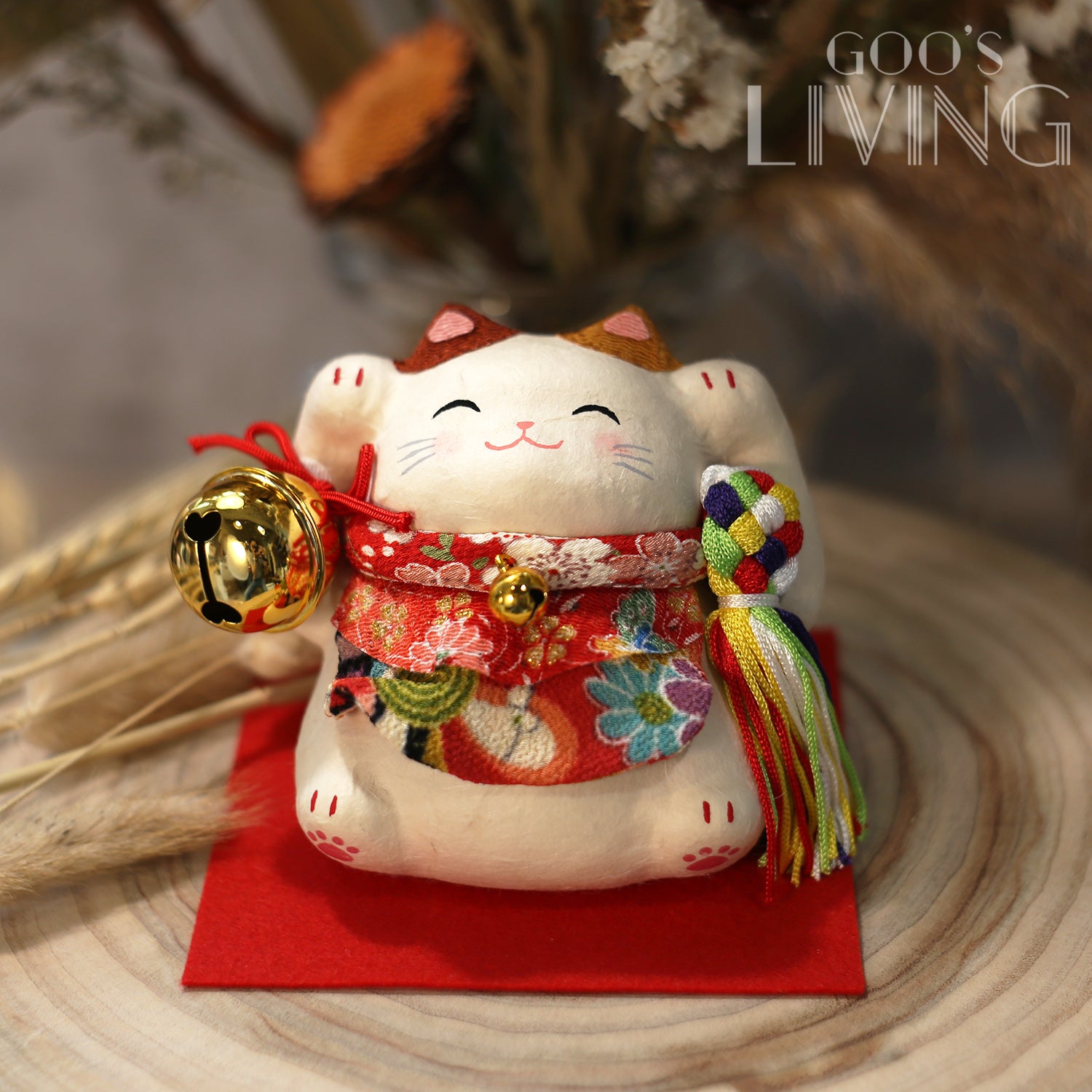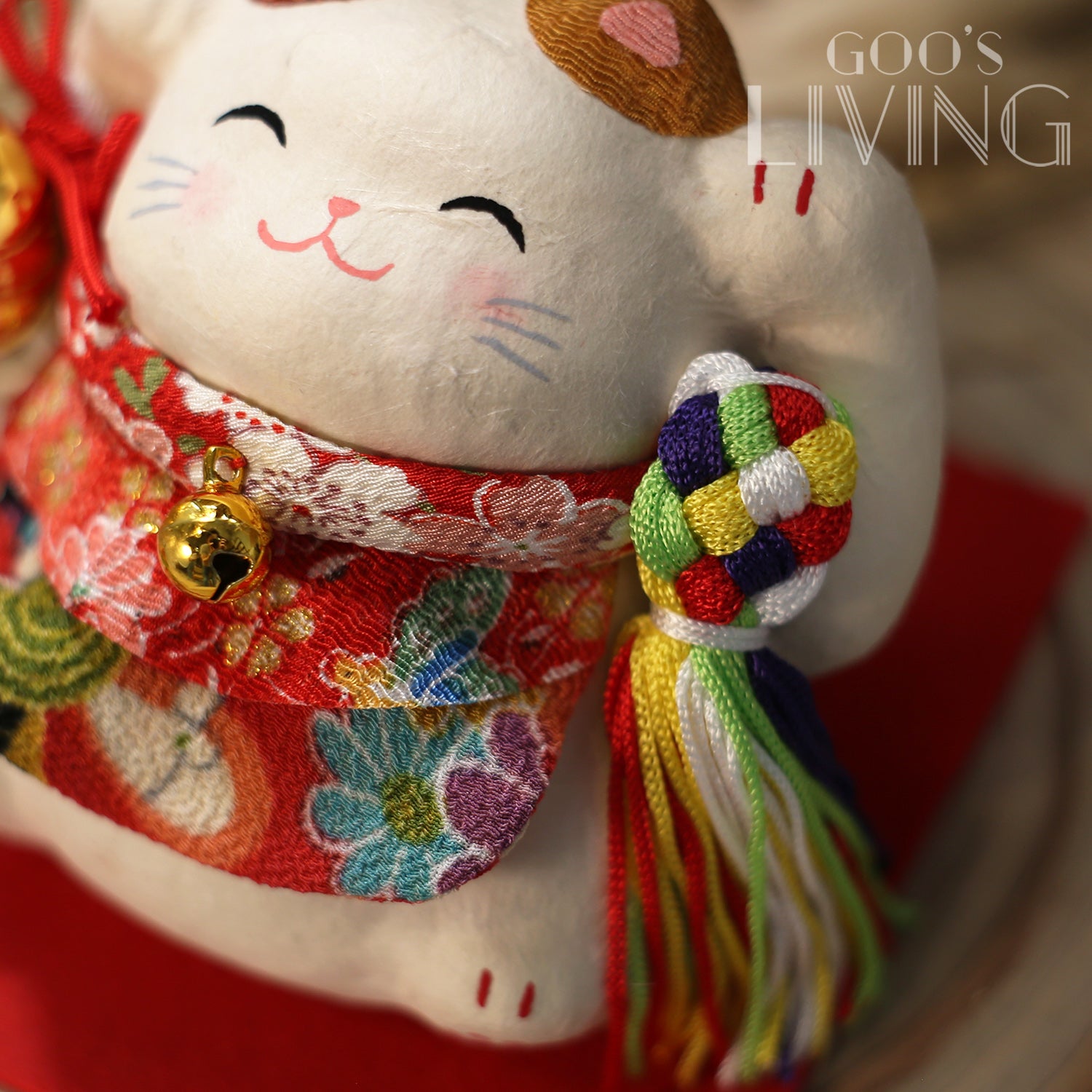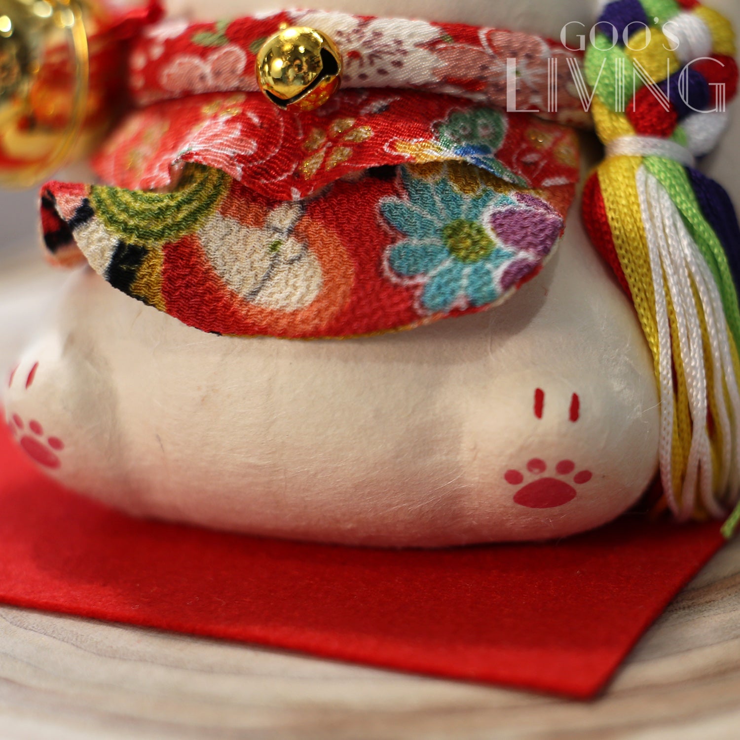 和紙製而又舉起雙手的招財貓市面上並不多,RYUKODO今年最新推出的三色貓就把雙手舉起,同時為你招財和招人緣。雙手分別拿著可召喚財神的鈴噹,和具有護身符意義的五色繩(五色代表五行:寓意祈福、平安、家內安全、辟邪和開運),務求為大家帶來好運,驅邪避瘟。此外,每隻招財貓的圍巾花式各有不同,每個均是獨一無二。