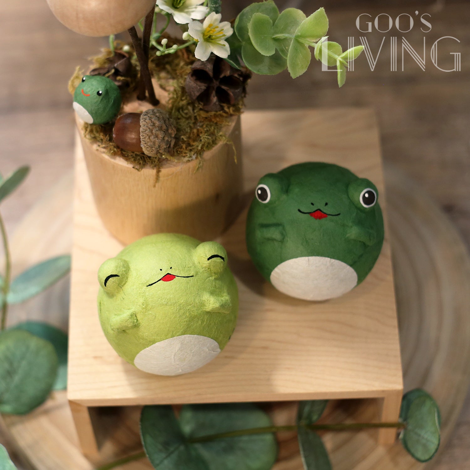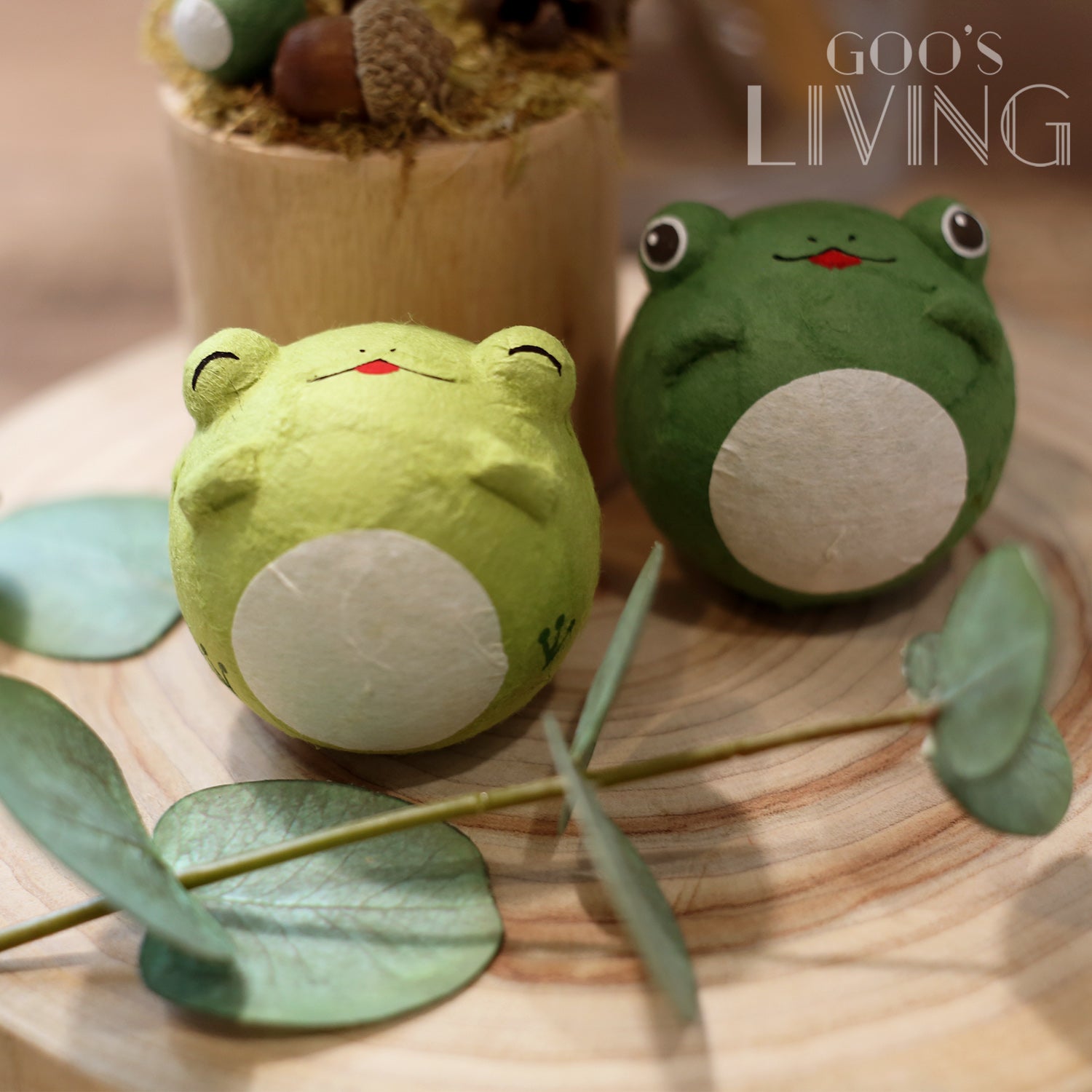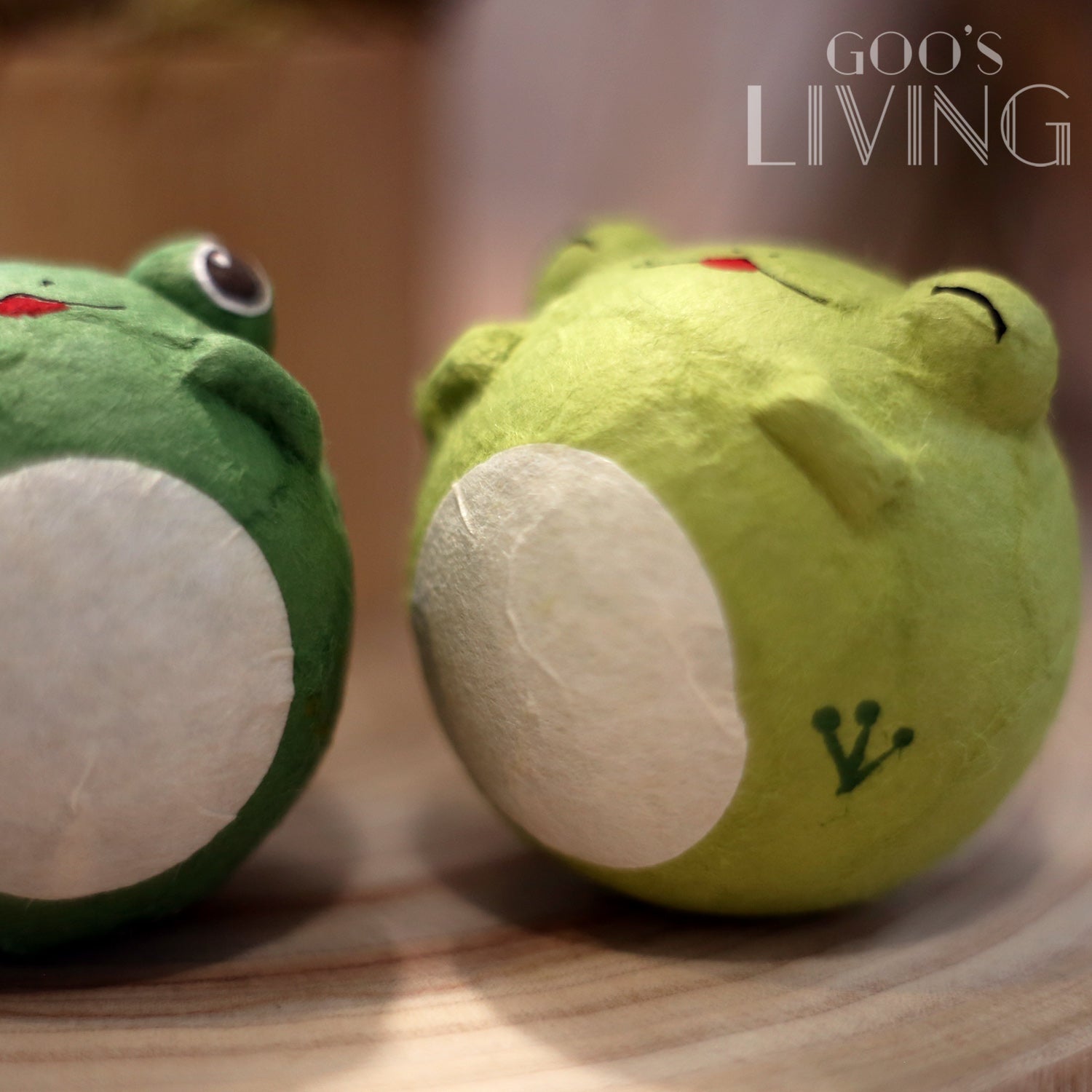 向來可愛的小青蛙化成兩個小不倒翁,隨意以手指戳一戳牠們,青蛙們即時左搖右擺,猶如向你搖搖晃晃地走來,舒壓感十足。不倒翁小青蛙更以和紙製作,不易摔爛,並設兩款不同的綠色,咪咪眼或圓眼表情同樣可愛,相當療癒。