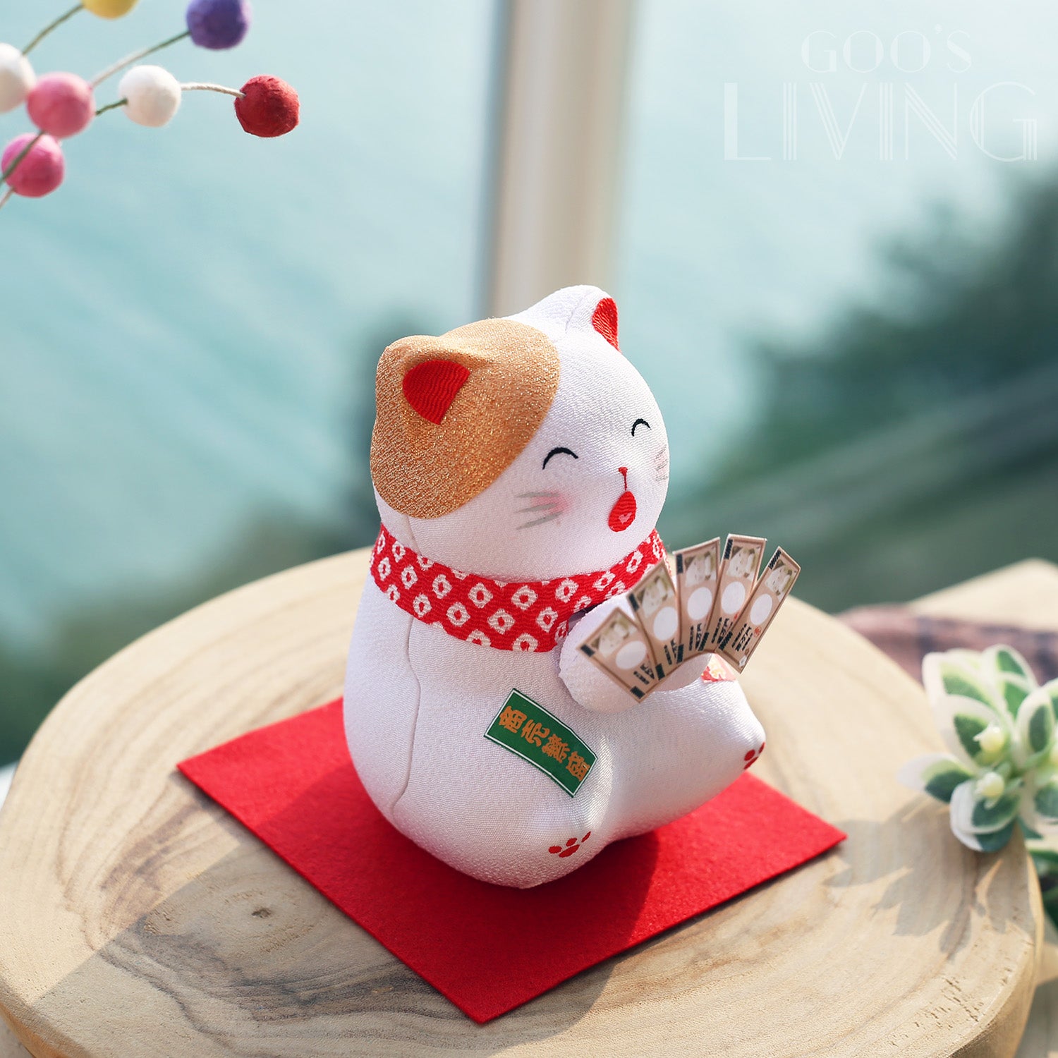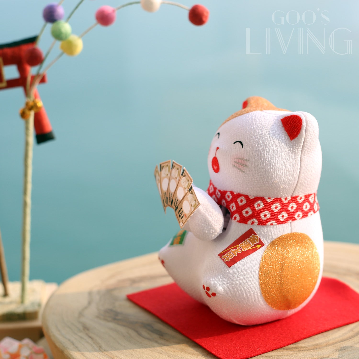 日本文化中的招財貓「右手招財、左手招人緣福氣」,這隻以太陽能為能源的招財貓就把雙手齊齊搖動,為大家招財又招福。而貓咪手上更拿著多張萬元大鈔,配以一臉開心歡呼的可愛表情,看著讓人心情開朗,好運自然來。