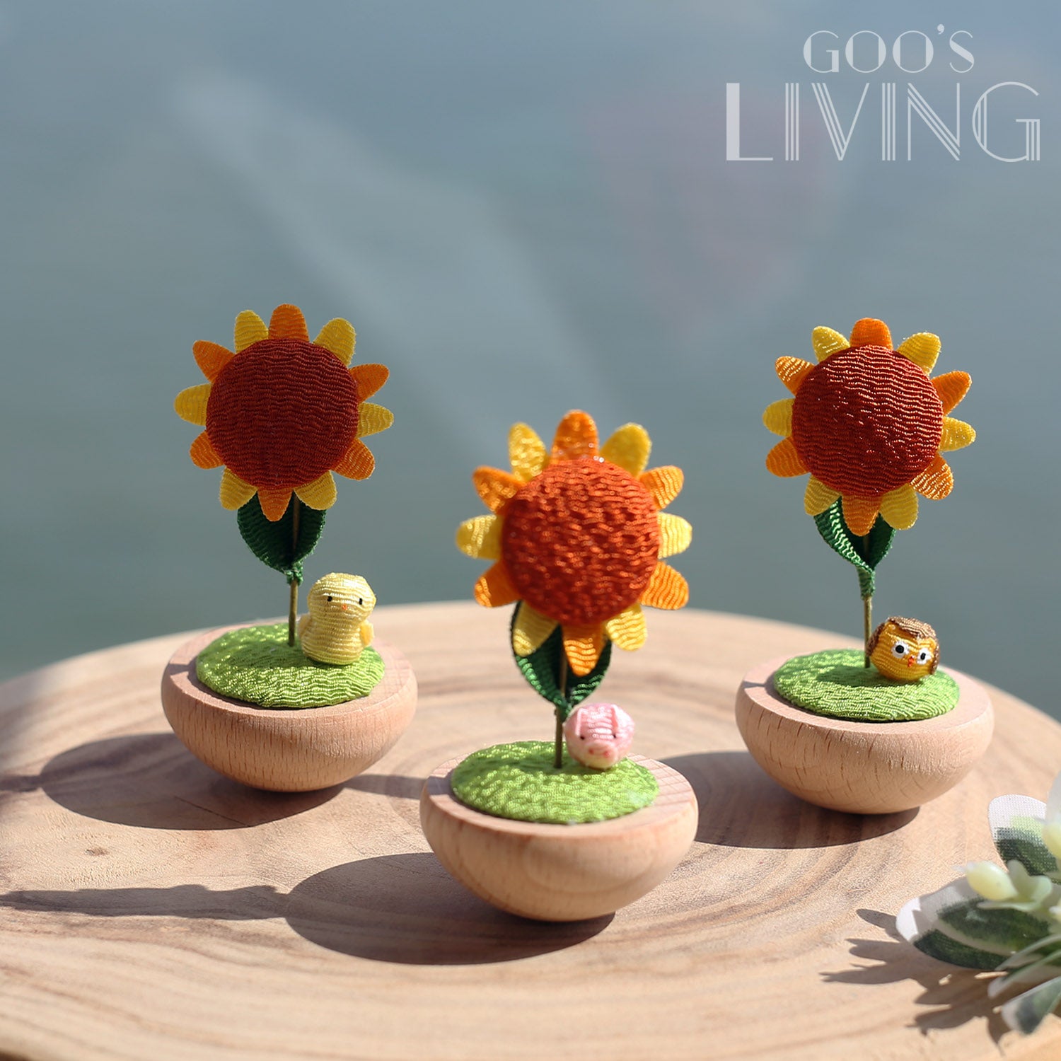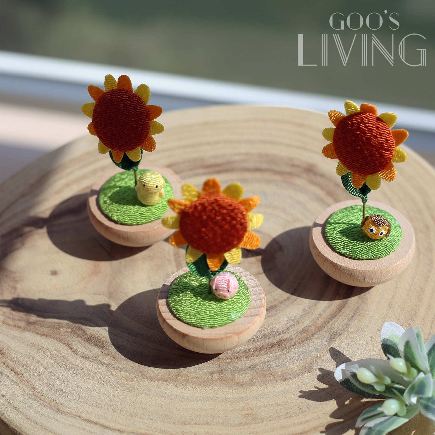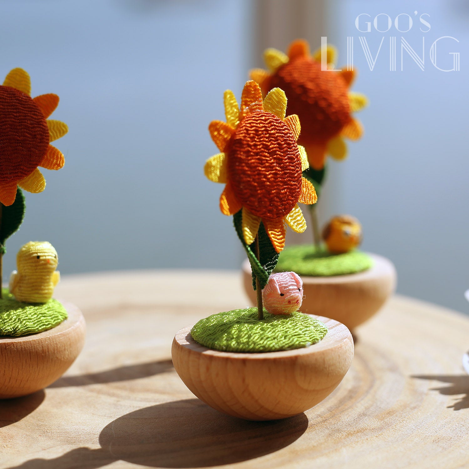 太陽花可說是夏天花朵的最佳代表,只要踏入7、8月,日本全國各地基本上都可看到太陽花金黃燦爛的蹤跡,隨時帶給人滿滿的元氣。品牌為配合季節亦同樣推出了以太陽花為主的產品,並把太陽花插在不倒翁設計的木上,象徵著太陽花勇敢追求,不易放棄的寓意,加上太陽花旁的小小動物,可愛感大大提升。