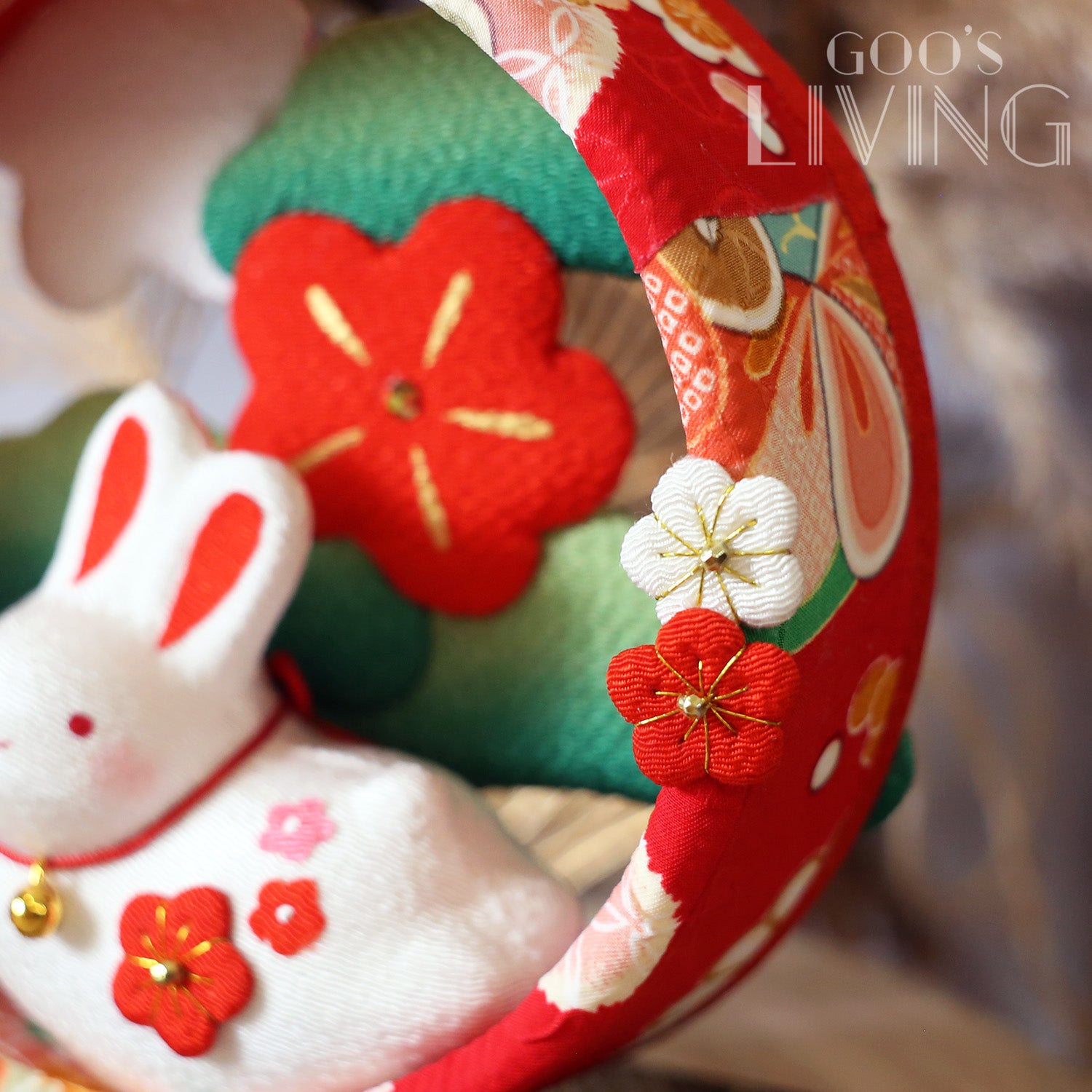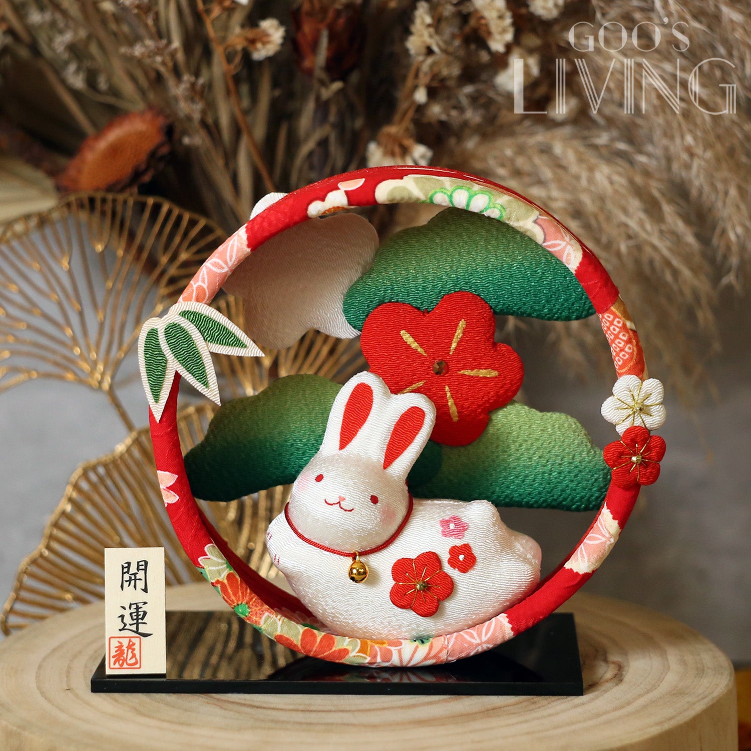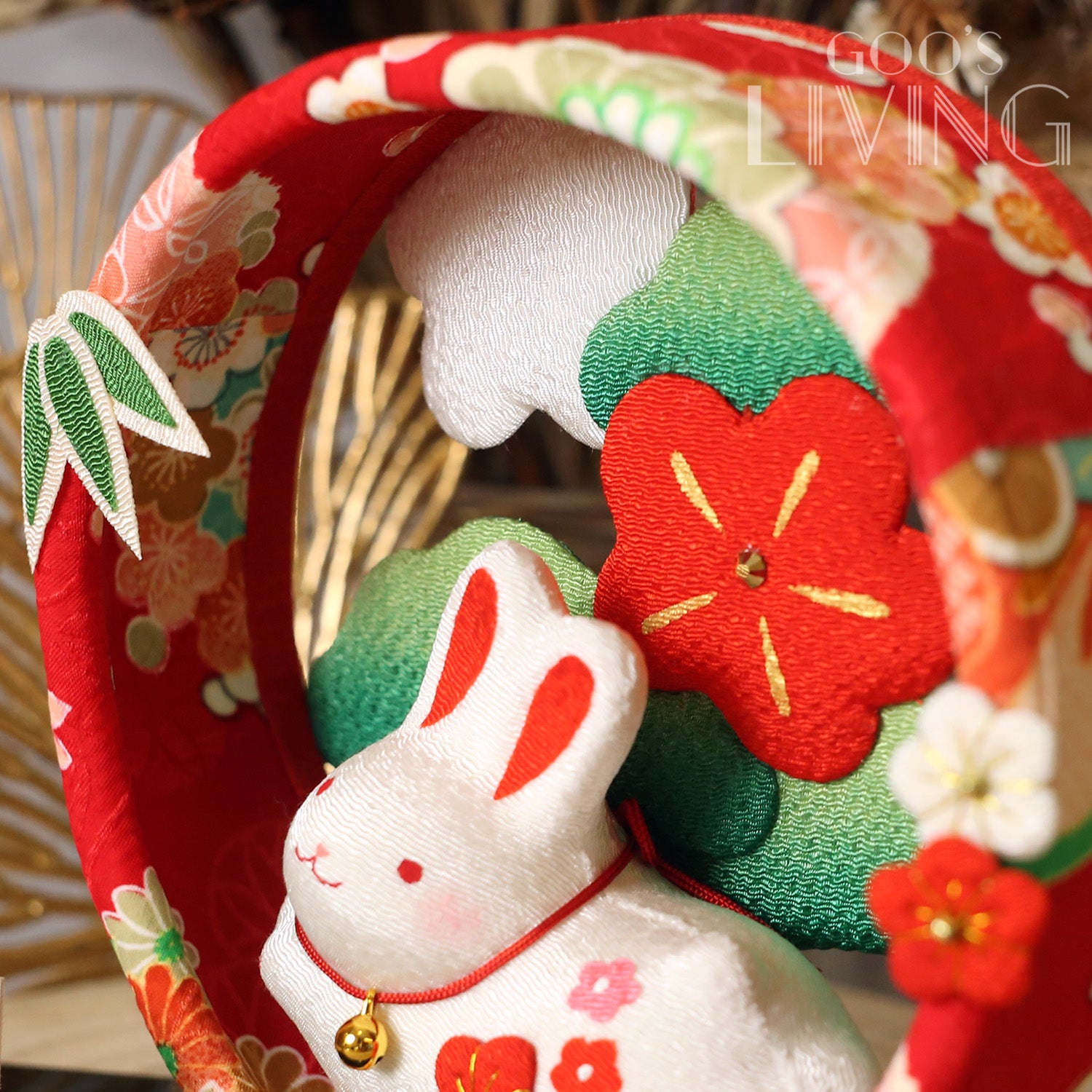 以松竹梅為主元素的圈圈小兔,有著長壽健康、子孫滿堂與慶賀之意,加上兔子在日本文化中亦是招來運氣的象徵,整個擺設意頭十足,為大家全年開運。而整個擺設有色彩繽紛的配色,加上正在跳躍中的小兔動態,最適合喜慶熱鬧的新年。