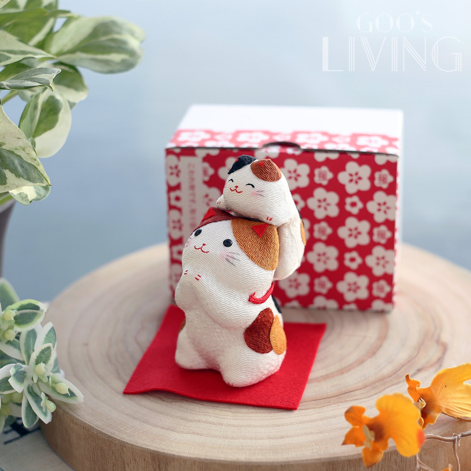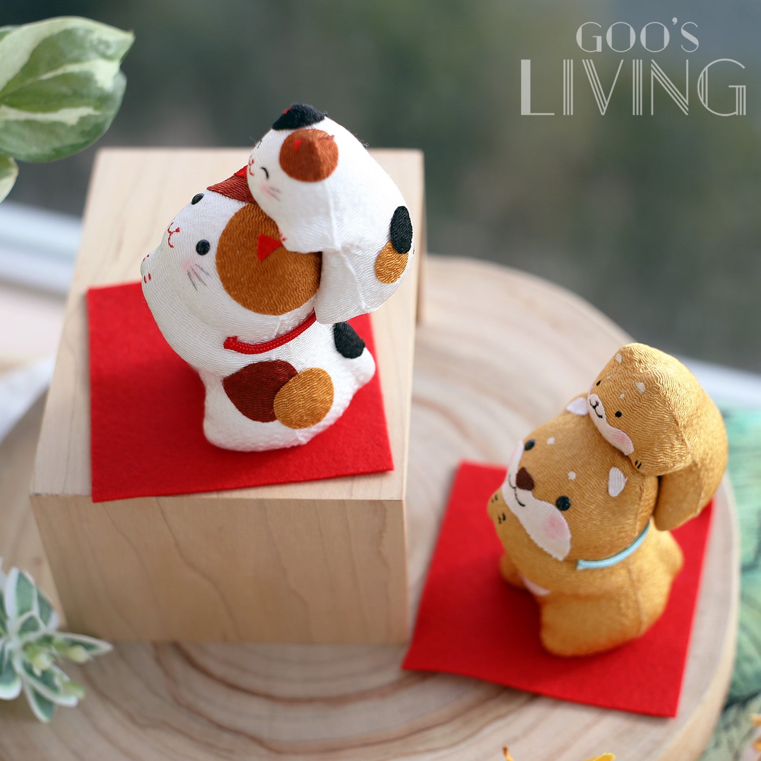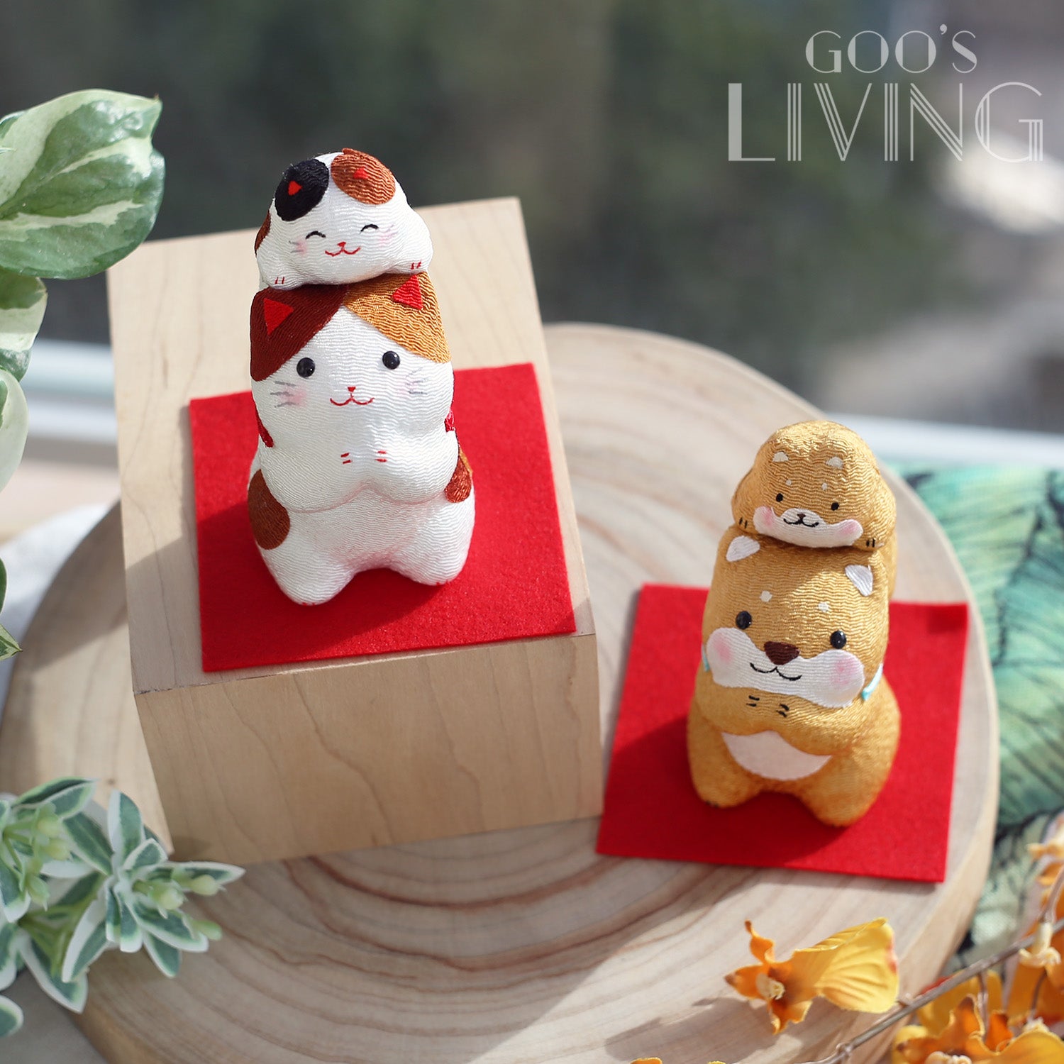 兩款親子系列均擺出雙手合十兼向上望的動作,務來為大家請來福神,帶來財運、好運與健康運。同樣擁有圓眼睛的三色貓與柴犬,配以騎在頭上的小貓與小柴,可愛度爆登,讓人一見愛上。