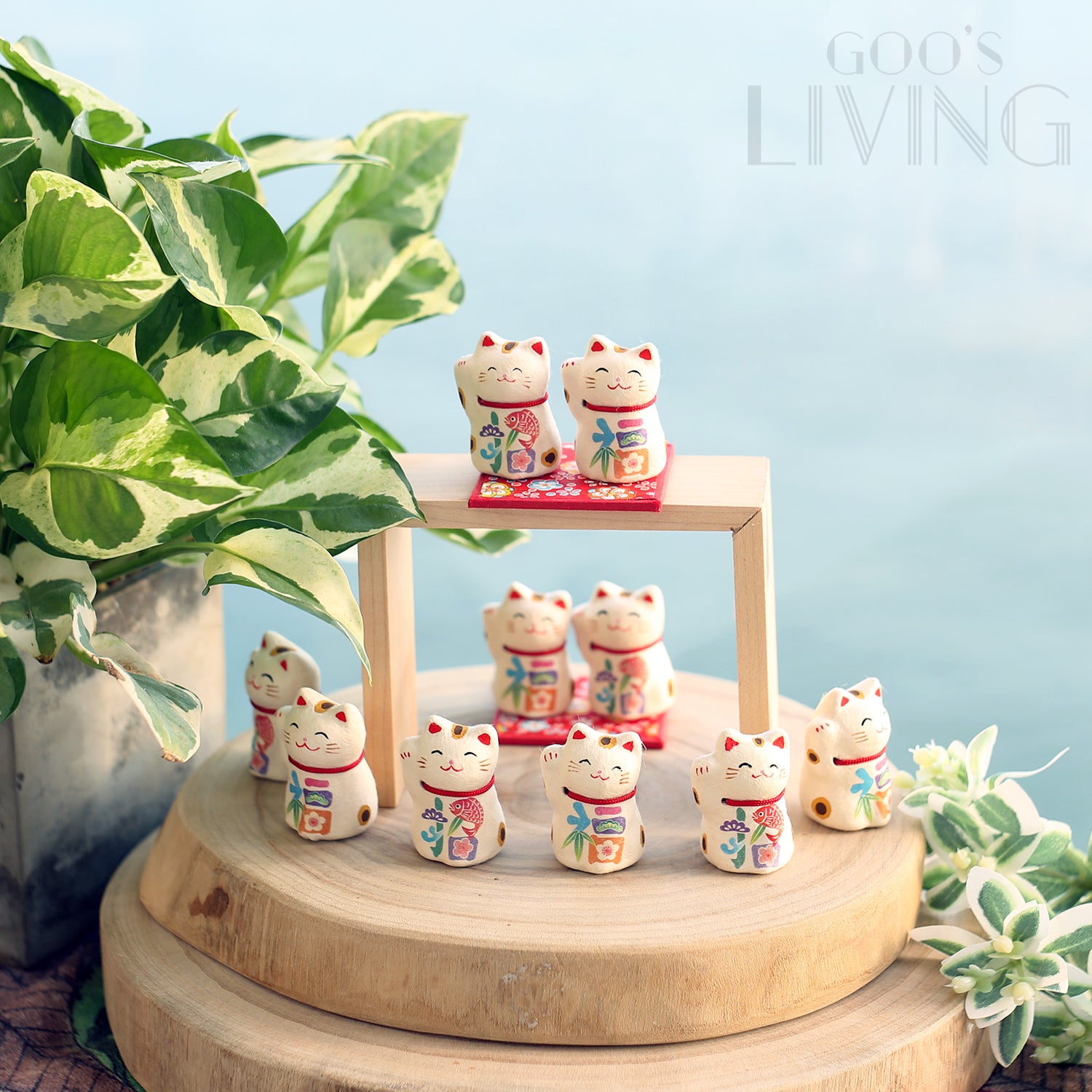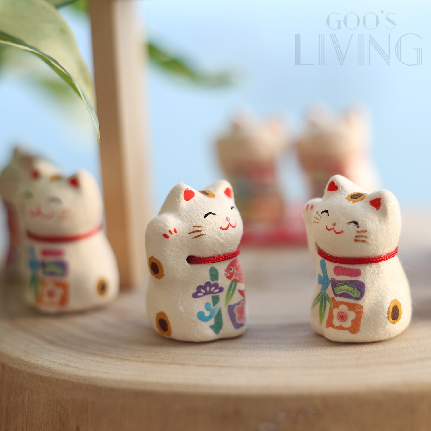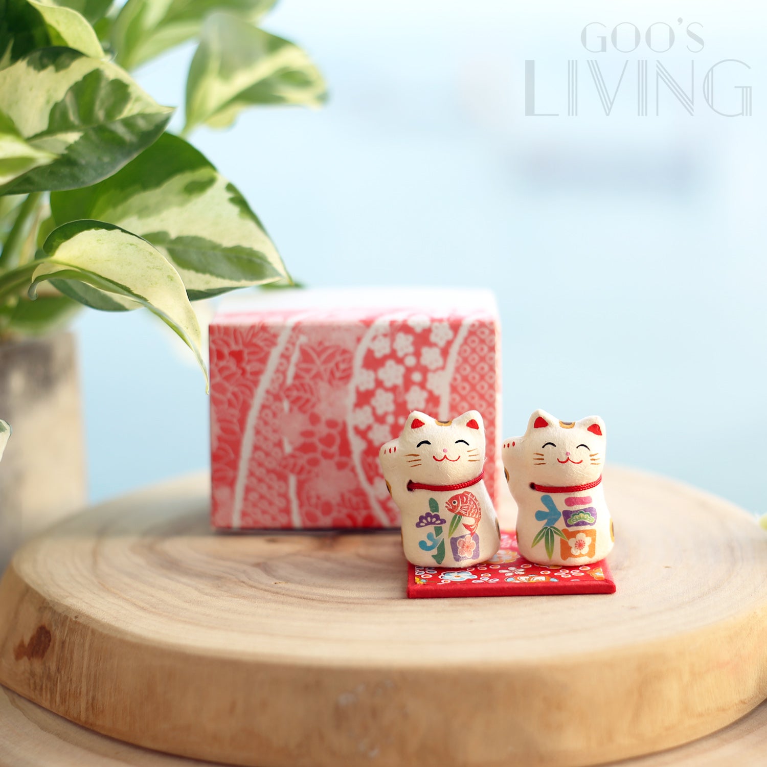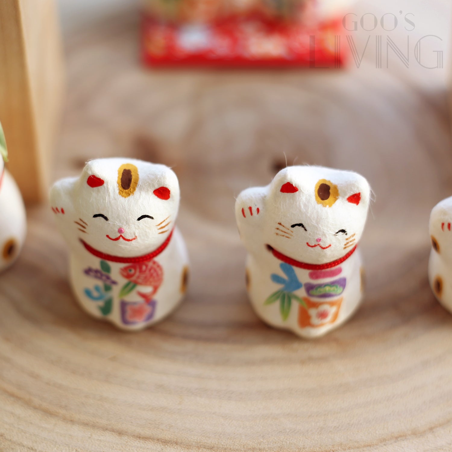 這對迷你招財貓比一般電池更細,高度僅得4cm,捧在手心感覺相當趣致。而兩隻貓咪身上均有日本工匠親手畫上的招福字樣,細看之下「招福」二字更是由多個不同的招運圖案拼湊而成,包括象徵吉祥、可驅除厄運的鯛魚,用作喜事及祈福的松竹梅等。貓咪越細,工匠製作時所需的技巧要求越高,每一隻均有不同,獨一無二。
