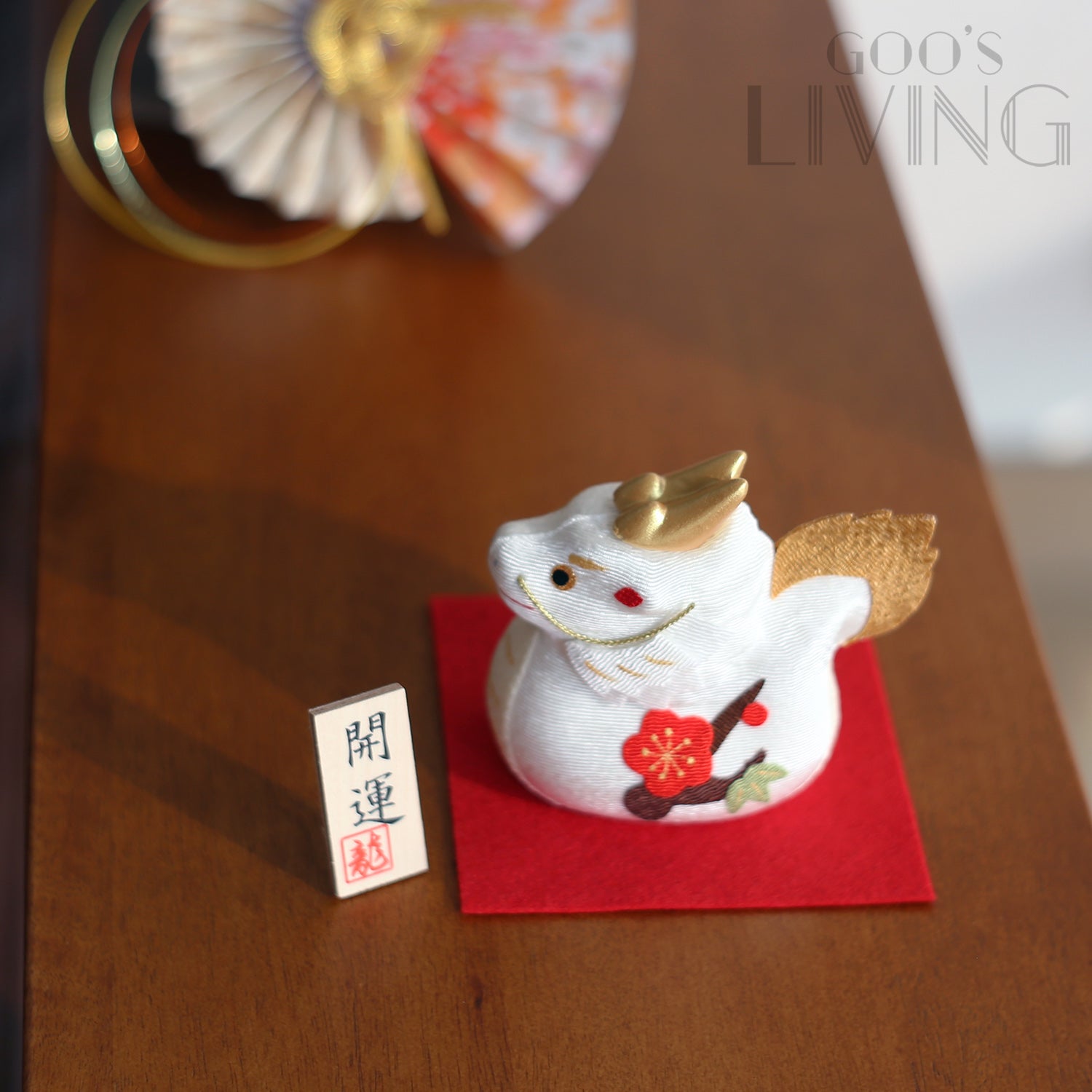 日本的龍有著不同顏色,但多以綠、白色為主,當中白龍就一直被認為是眾多神龍中最有力量和速度最快的龍,並具有帶來財運的法力。是次的白龍身上更刻有代表身體健康的松竹梅圖案,滿滿祝福之意。