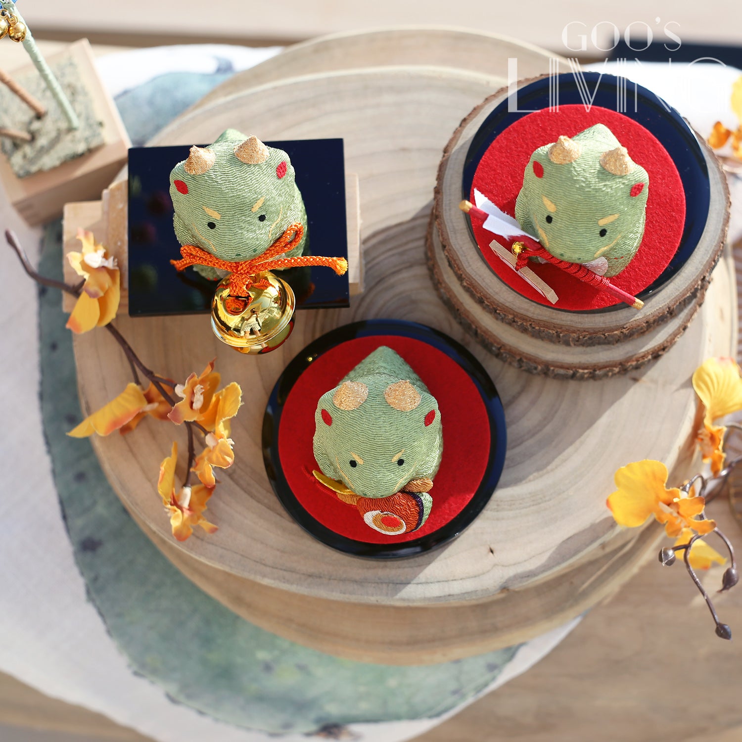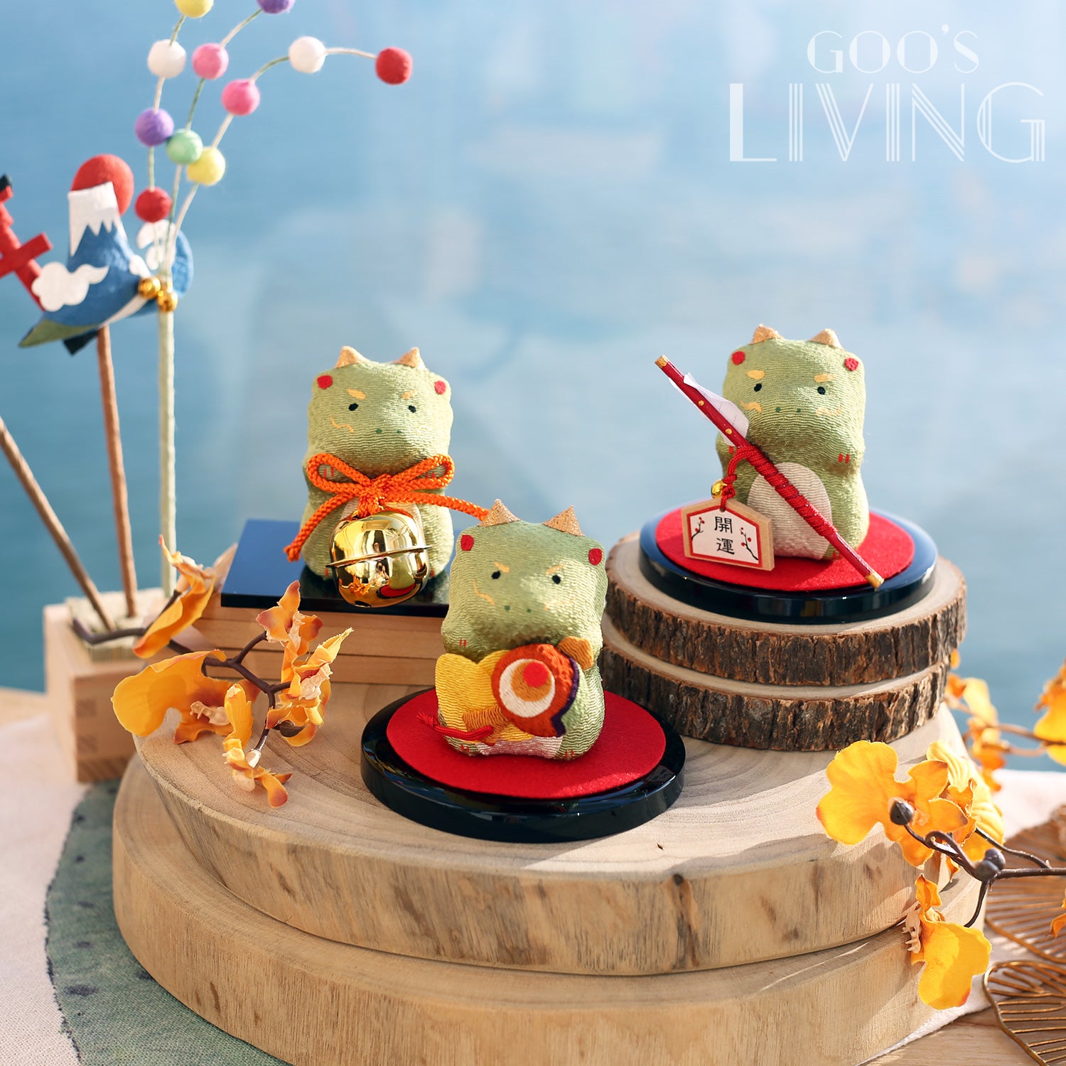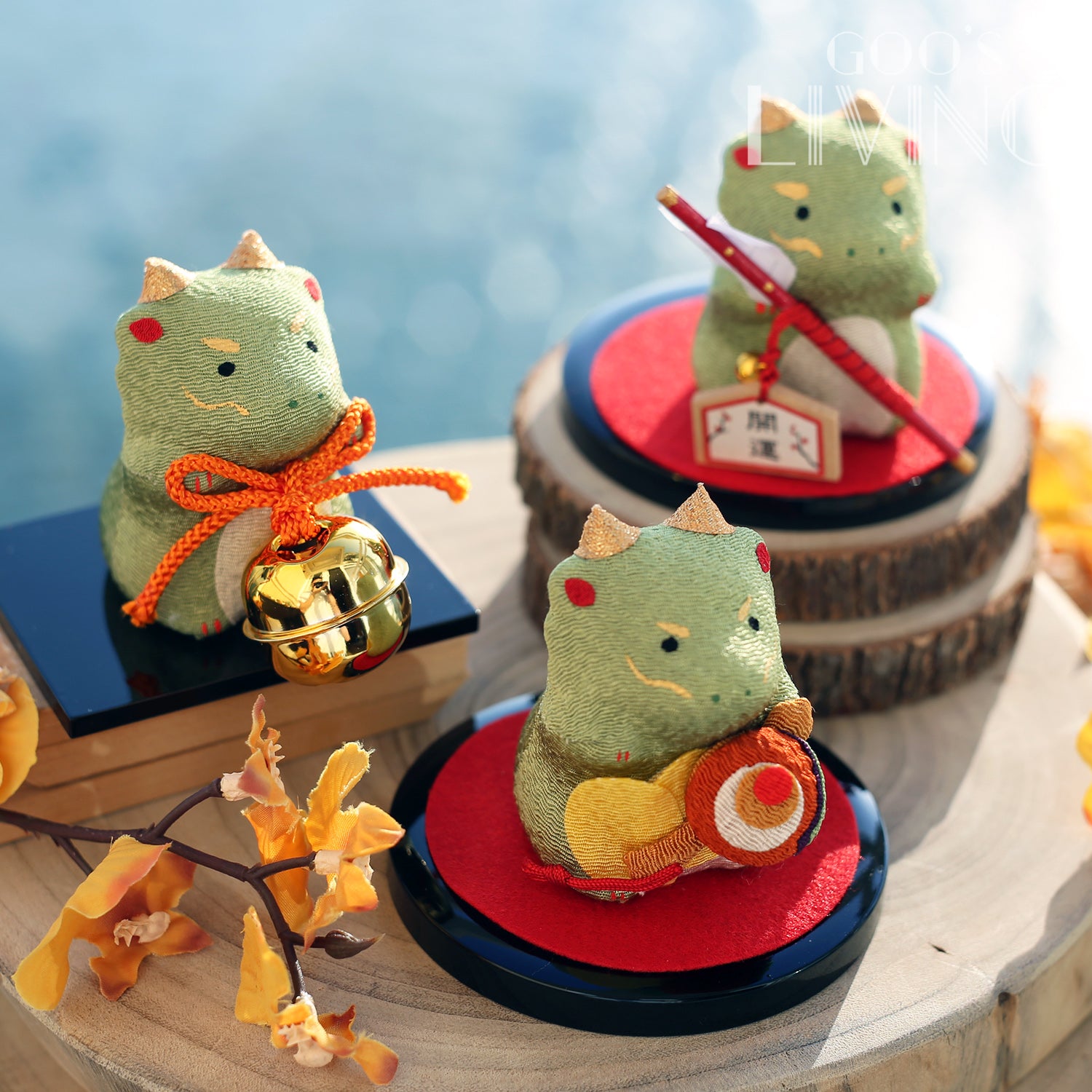 綠色的龍被譽為海洋的守護者,品牌是次就把神聖威猛的龍卡通化,化成三款不同寓意的吉祥物:拿著大鈴鐺的龍祝願福神能讓來年順順利利、拿著破魔矢的小龍則望來年可開運除厄、而拿著福槌的龍就望來年心想事成,財富滿滿。