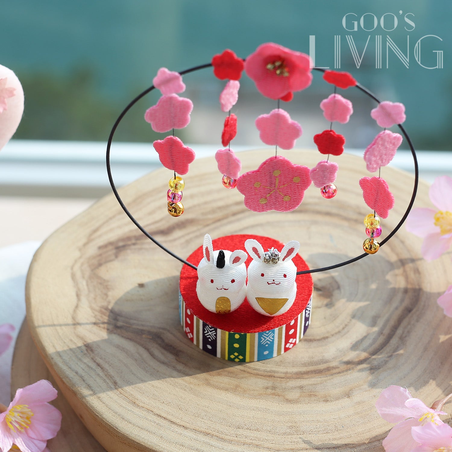 今年的對裝櫻花小兔照舊化身為天皇天后,但卻以簡約風為主,僅以手上的金飾和頭飾作點綴,可愛程度大大提升。而背景則用上可搖曳的櫻花,並設圓形框架增添整體感,以最優雅的模樣為大家祈求平安健康。