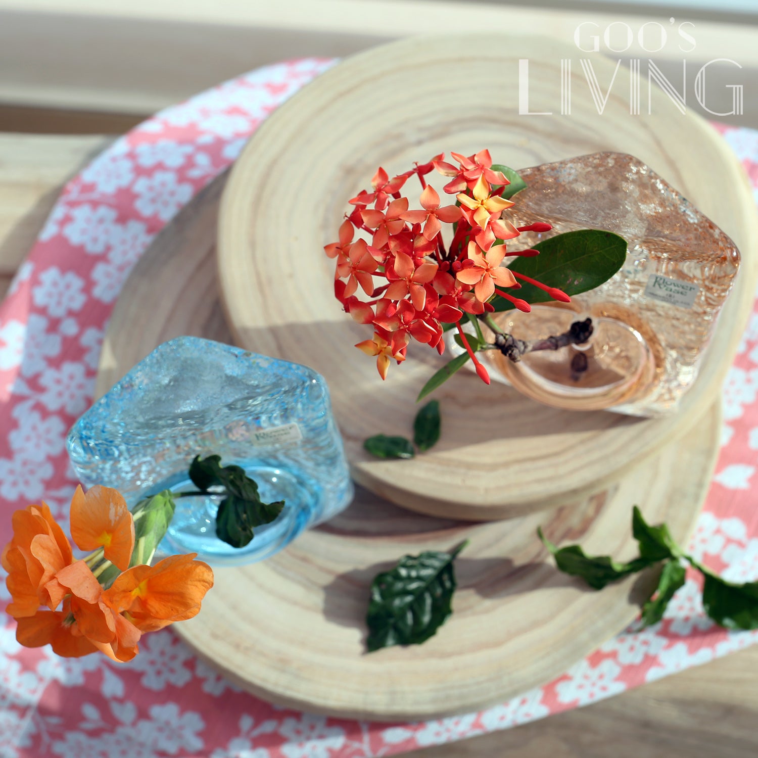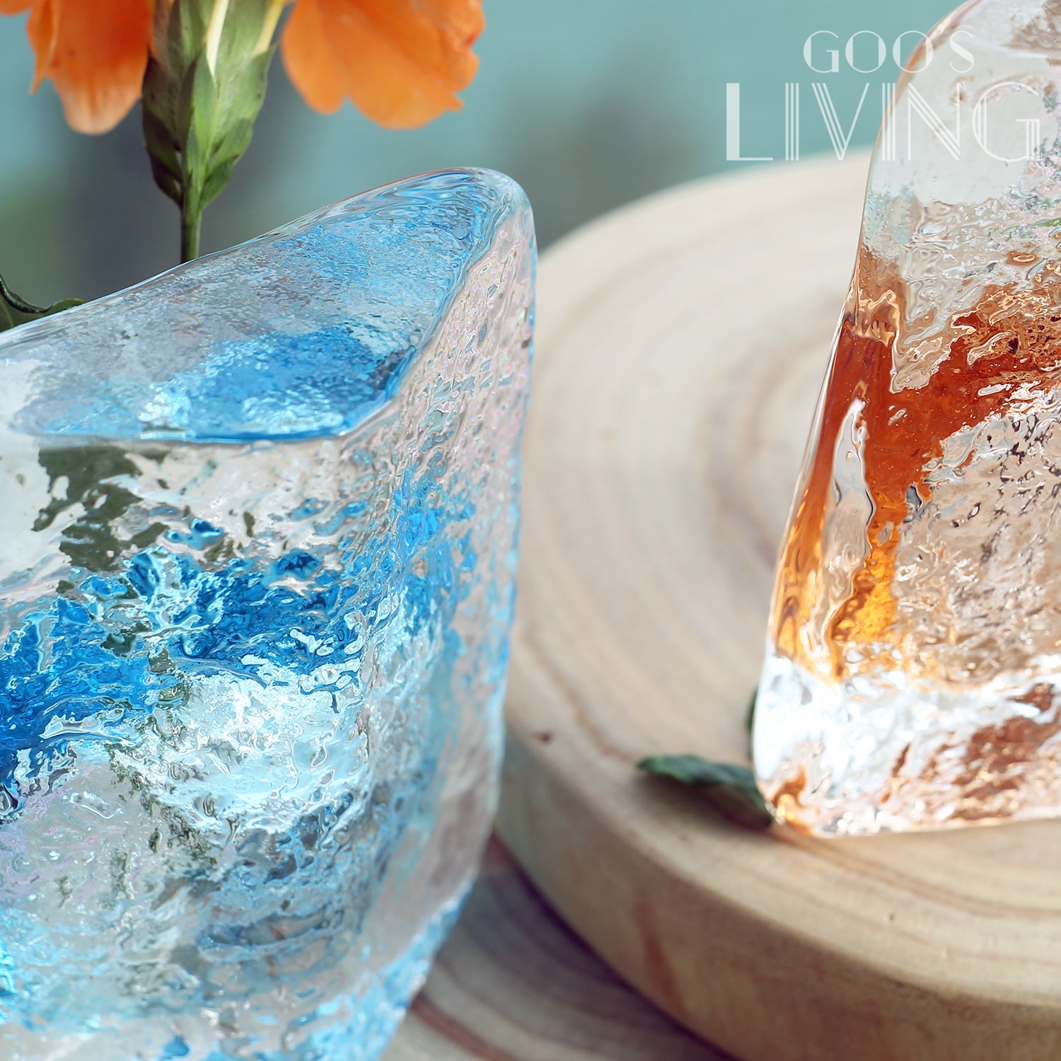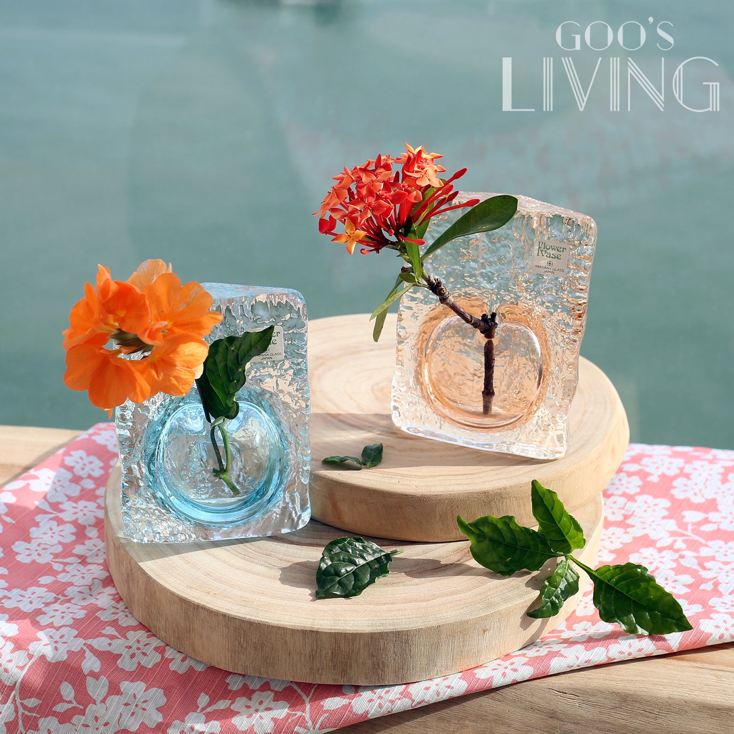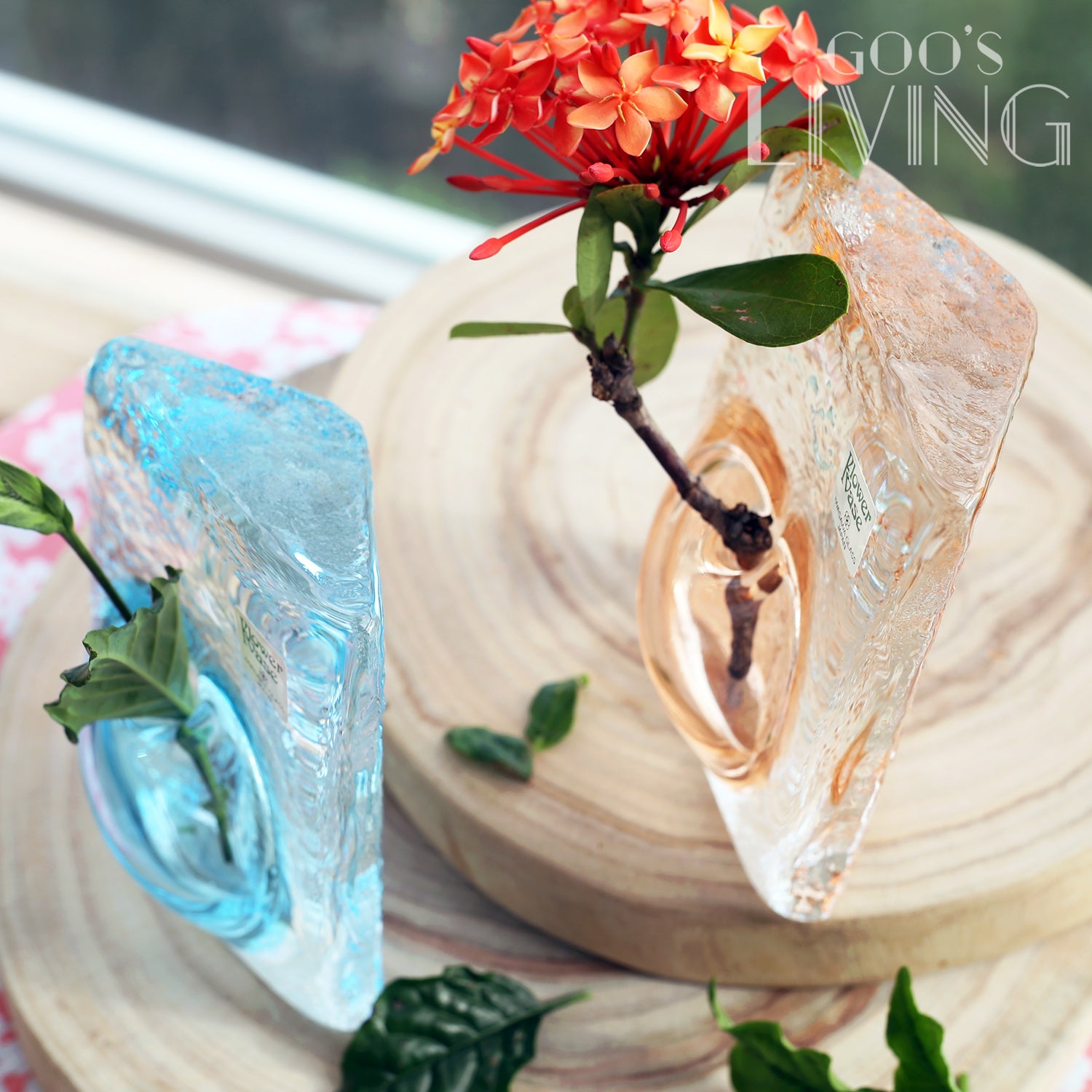 已有過百年歷史的Toyo Sasaki,一直以著名的玻璃技術聞名。是次的三角玻璃小花瓶,就選用了海洋藍和珊瑚粉兩種清爽配色,並把整個花瓶打造成不規則的冰塊造型,像融化中的冰雪般隨性,晶瑩剔透。三角型設計更可讓花瓶平穩放在桌上,只需插上一、兩朵小花,即可為家點綴,增添溫馨浪漫感。